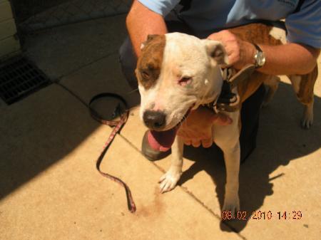 Matilda is a stunning brindle and white staffrodshire cross who came into the pound as a stray. She has a lovely nature and is craving some one on one attention. She would do well with a owner who is active and can spend time training her. She really is just one big pup!!