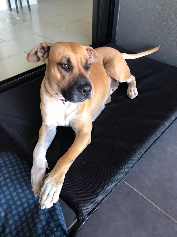 She is friendly around new dogs and people. Ruby spends her mornings snoozing in the sun and is an overall relaxed easy going girl. Her slightly uneven jaw is the result of a healed broken jaw, however, this does not effect her daily life or eating ability. Ruby’s beautiful soul and nature outshines her physical imperfections ❤️