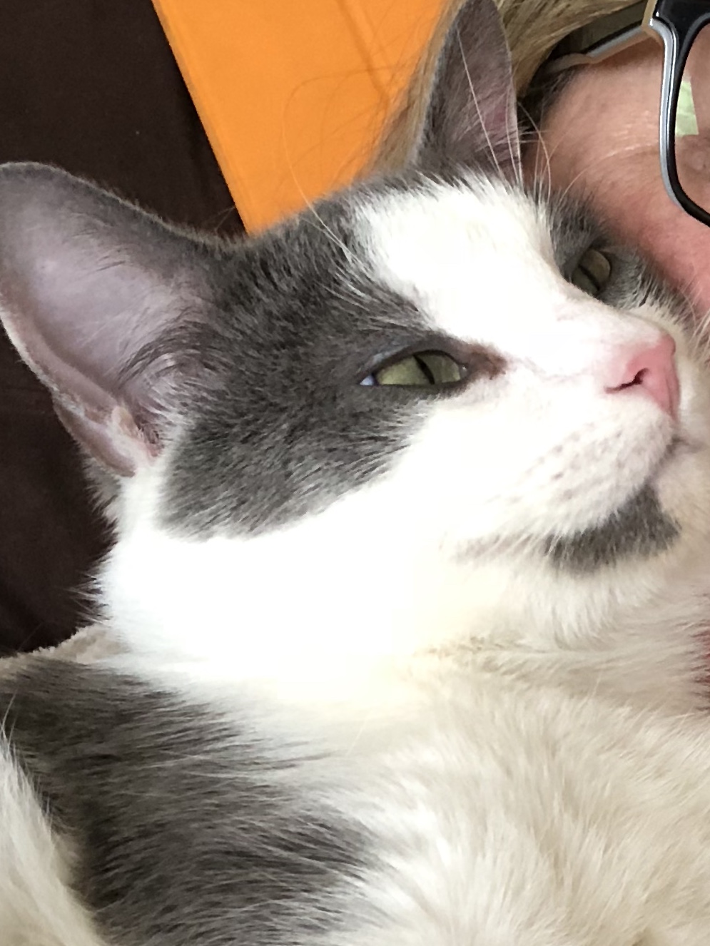 Wendell is a cuddly boy. He will sit in your lap for hours. In the evening he is very partial to playing with whomever will indulge him-cat or human. He can get a bit overly boisterous with play, so would not suit being with young children. This boy likes to be the centre of attention and keeps an eye on all the goings on in the house. He will make a terrific companion cat.