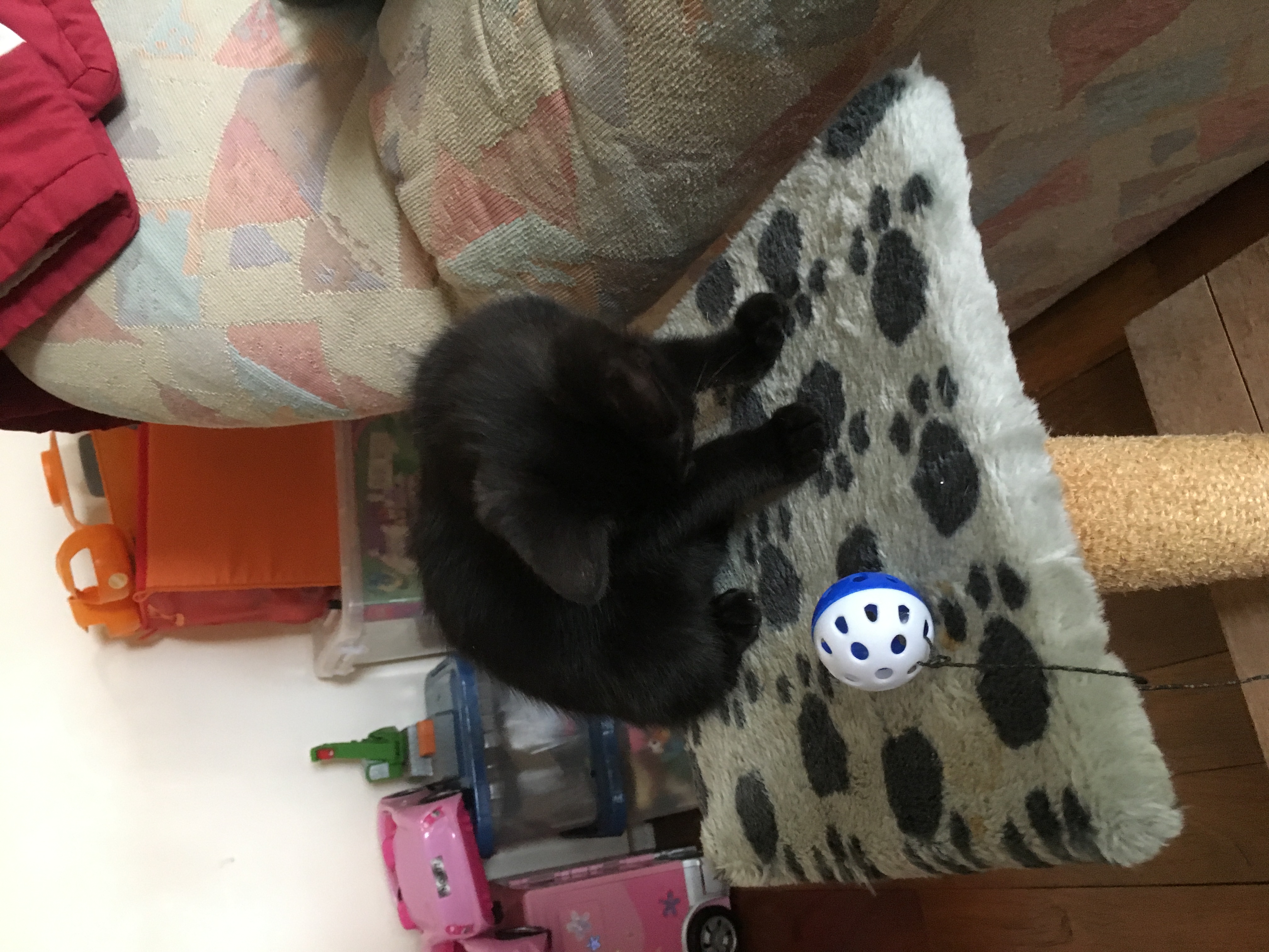Star is a shiny black kitten, full of life. Came to us with his two siblings and mother. Has proven to be very playful but enjoys his cuddles.