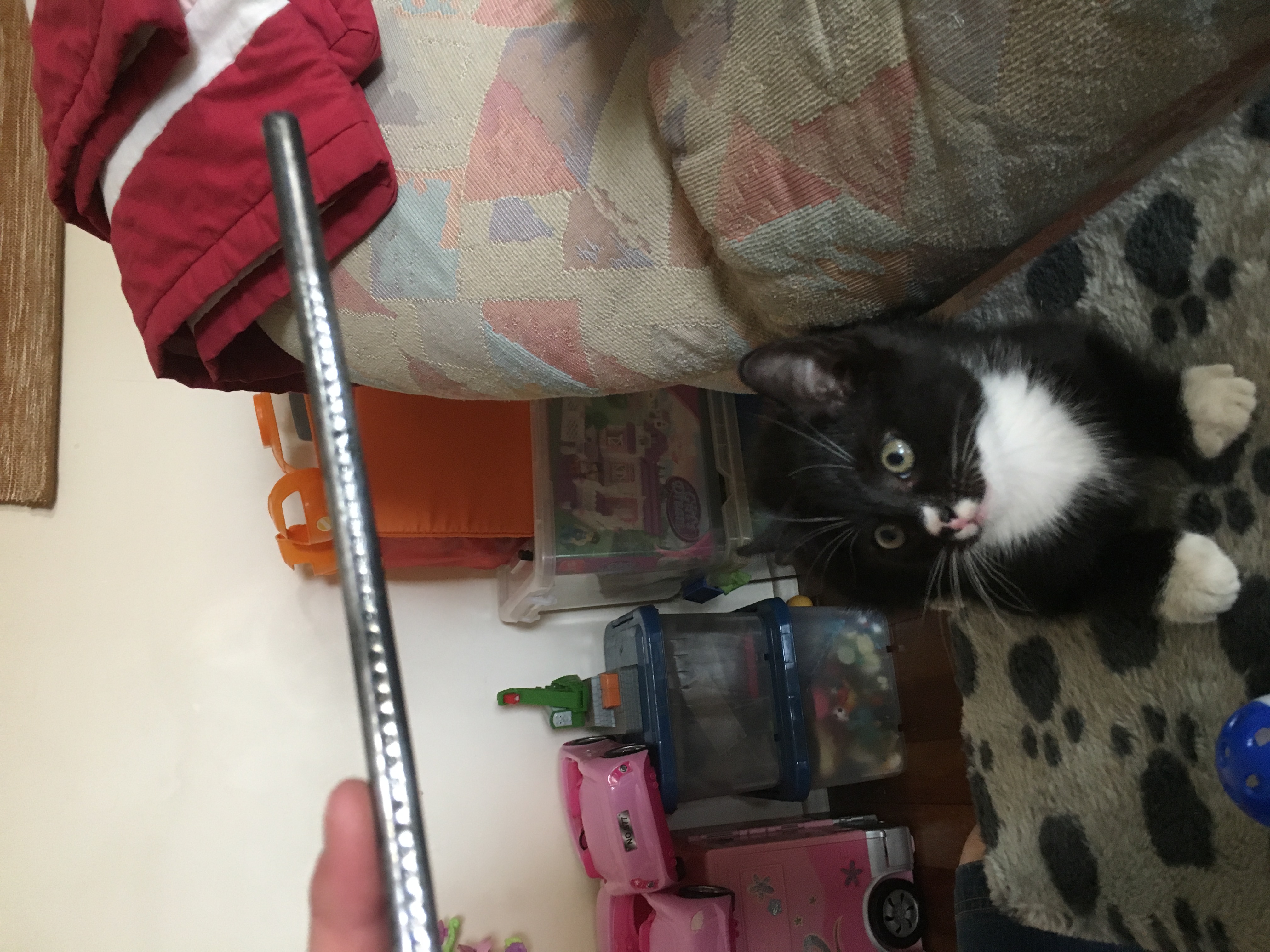 Button is a pretty black and white kitten with a cute pink nose. Loves to play. He came to us with his two siblings and mother. Has proven to be very playful but still enjoys his cuddles.