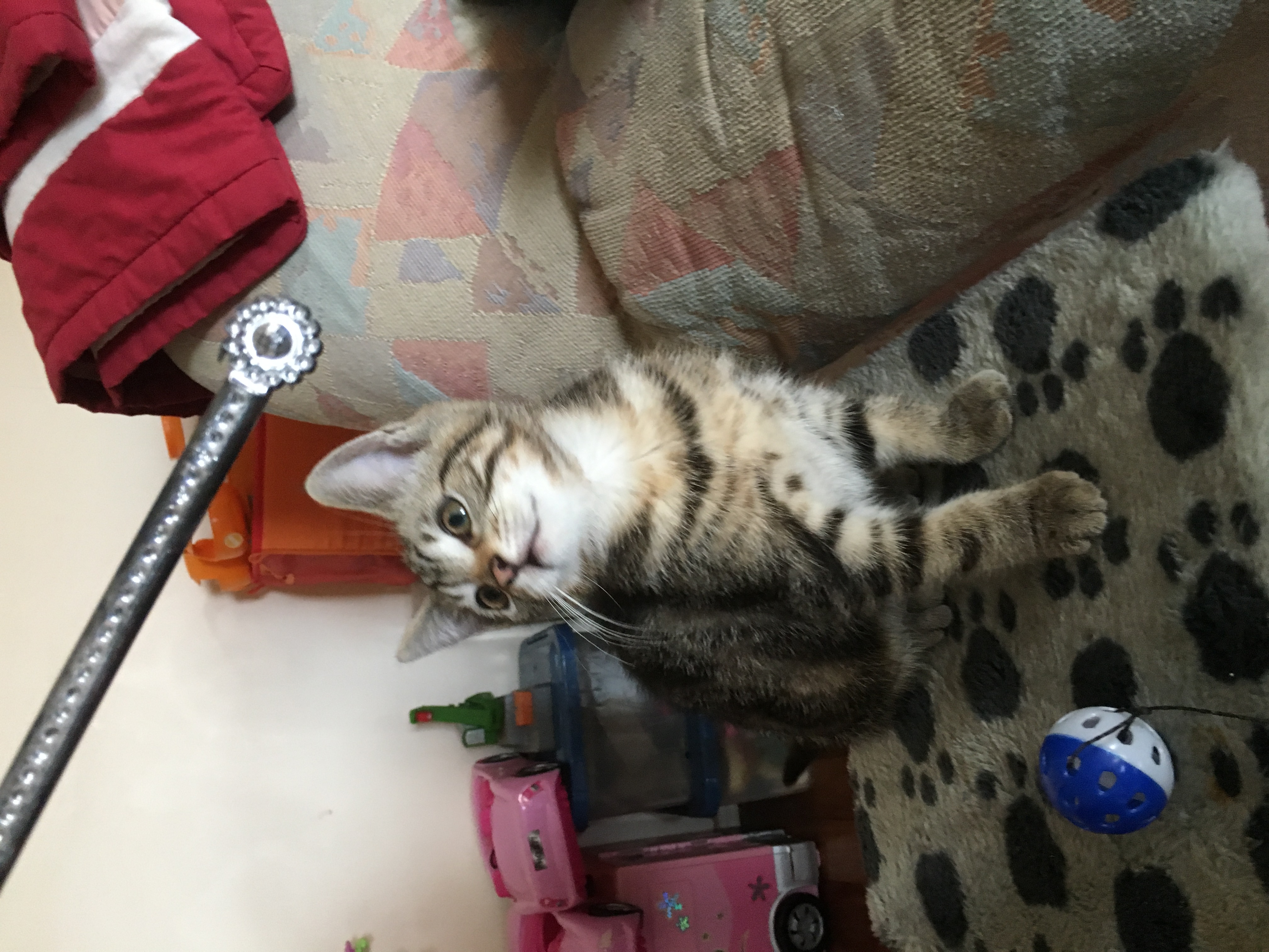 Tiger is a cute little tabby. Loves to play and chase his toys. He came to us with his two siblings and mother. Has proven to be very playful but still enjoys his cuddles.