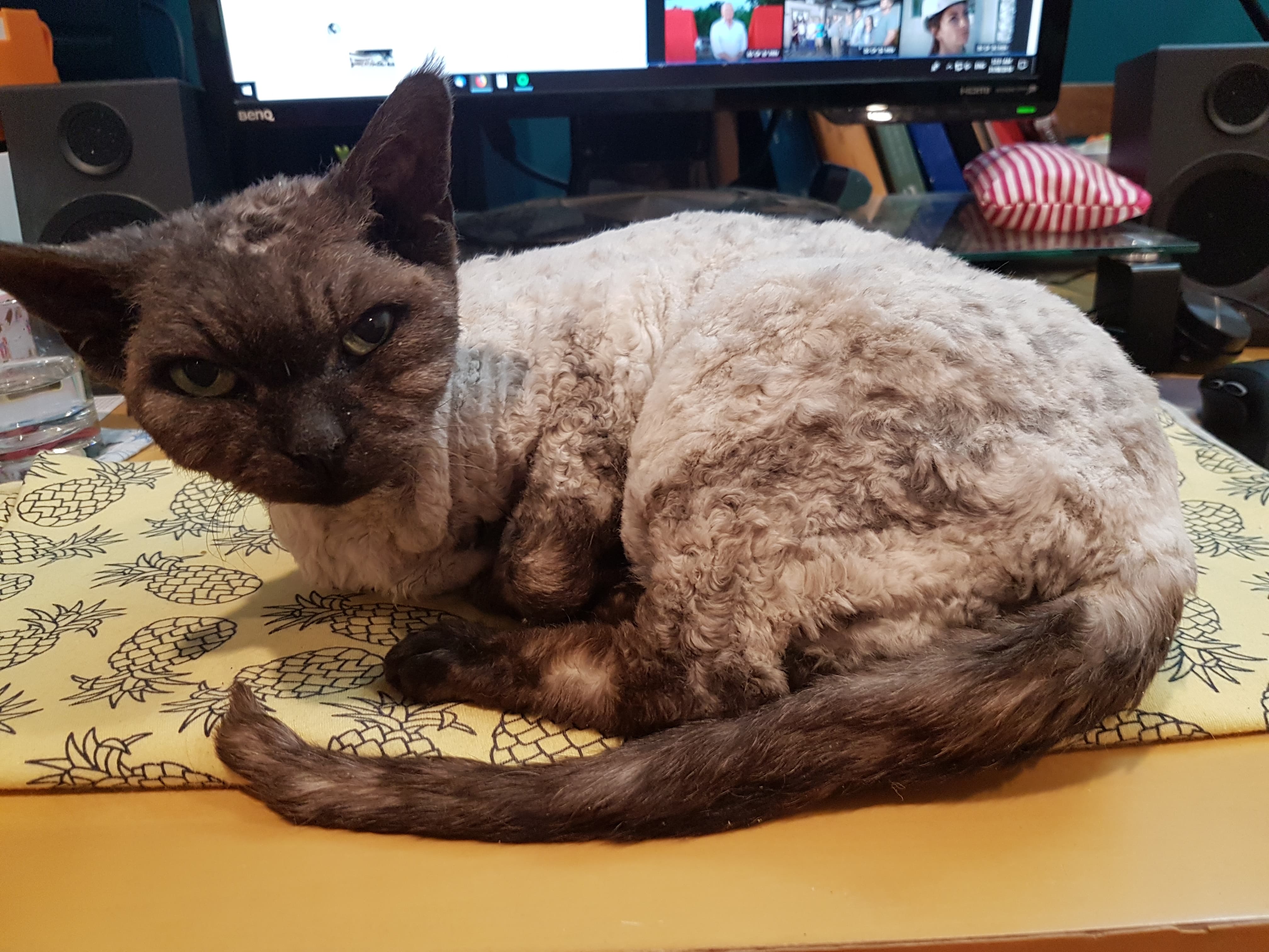 Shes not a jumpy energetic cat and prefers to lay on you and gaze at you adoringly with those huge dish eyes.