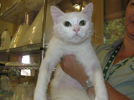 Hello! my name is polly. I am a 6 month old, pure white, domestic medium hair kitten. I was surrendered into the stud park vet hospital as a stray. I have a very placid nature and i am always ready for a cuddle. I am very loving and enjoy spending time with people! i am still very playful and love chasing my mouse and my ball. Young children, other cats or dogs do not intimidate me, so i will be suitable for any home. Adopting me does come with a small fee, which includes the following services,