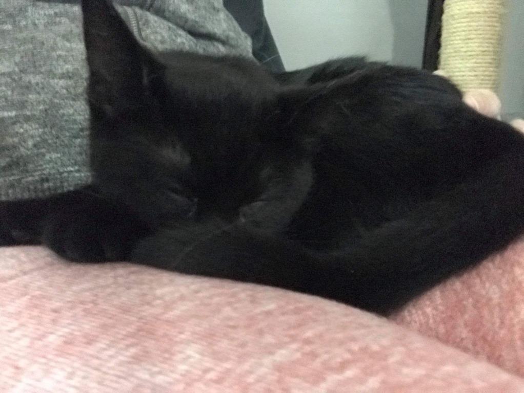 My name is Black Widow, I am a little thinker and love to watch the action going on from the comfort or my foster mummys lap. But you get out my favourite toy and watch me come to life and see my playful side.