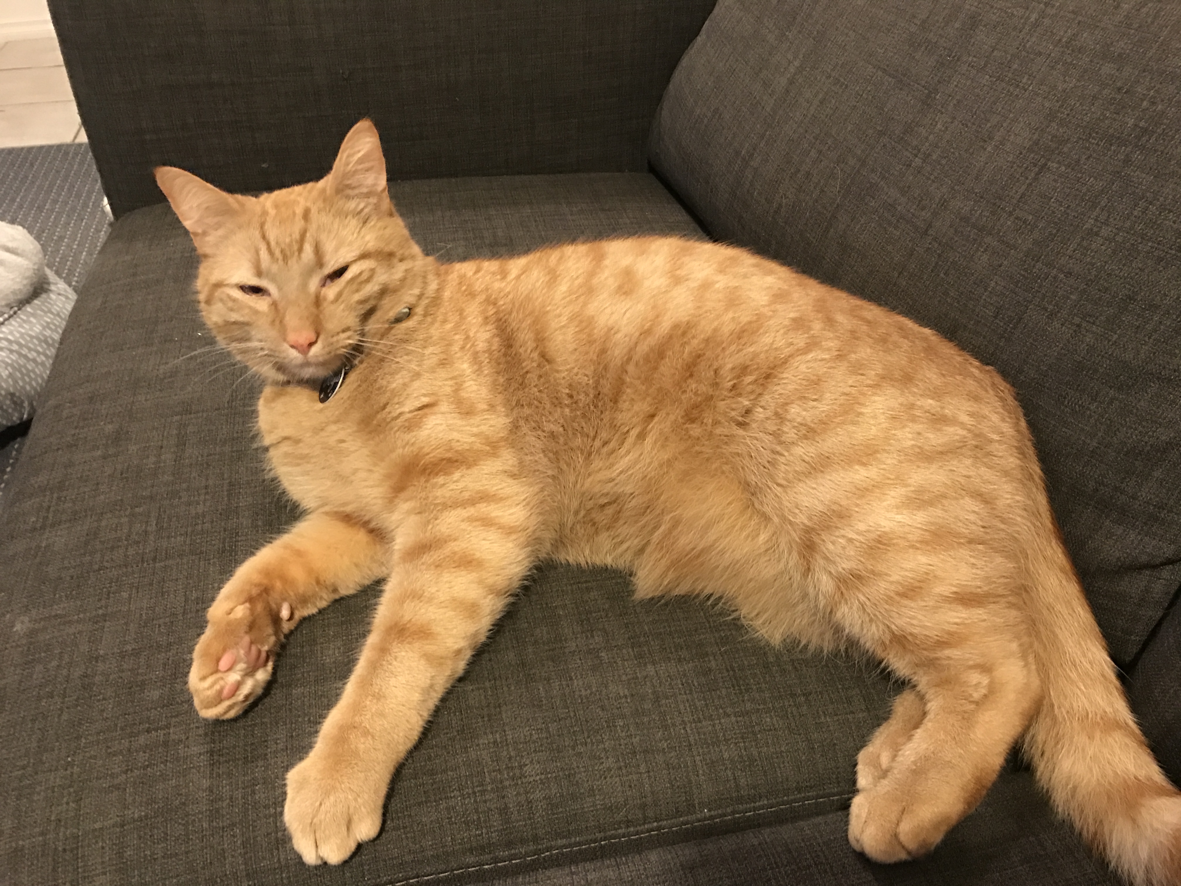 Angus is a gentle affectionate quiet cat who follows me around the house and loves being near his human 💕 he plays well with other cats but needs to be either an only cat or live with a friendly cat as he's so gentle he will not stand up for himself if a animal doesn't like him. He is only a year old and has had many homes already because of this he sometimes hides from loud noises or heavy footed males but once trust is earned like I said he will follow you around the house, sleep at the end of your bed and want to remain close to his person 💕