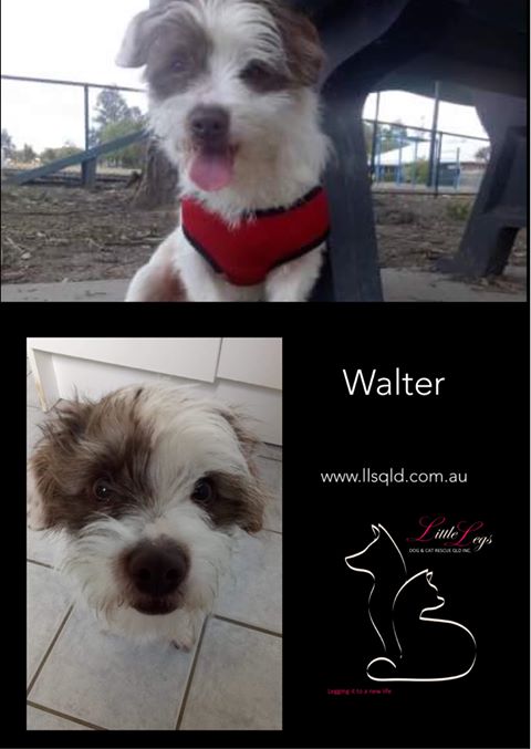 Hi, my name is Walter! My name suits me perfectly because even though I am only a year old, I look like a wise old man. My foster mummy also says I am part meerkat because I like to sit up completely straight and everyone thinks its pretty funny. I am definition of a lap dog because I would be more than happy to just curl up and cuddle you for hours on end. I don't really like to bark but I have been known to sook a little when my foster parents leave. I've had a little bit of a rough start to life and my foster mum says I would suit a family or person who is home more often than not and where I can get lots of love and attention, but I also don't destroy anything at all when left alone. A house with another dog to keep me company like my foster brother has sure would be great too, but I'm okay if I am your only boy. My foster mummy says I have brightened up her life and am the sweetest little boy with such a quirky little personality. I've been told I deserve only the very best and I'd love to meet my new family soon! -Walter