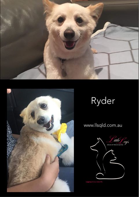 Ryder is fine with cats, friendly with smaller dog breeds but wary of larger breeds and greets them with a growl. He would be better suited to a smaller breed companion or a female dog, as he likes to assert his dominance with larger male dogs.