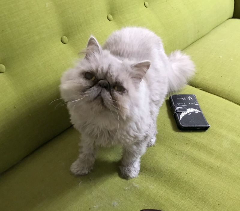 Lila the lilac Persian is an abuse survivor. Lila has a permanently misaligned jaw due to it having been broken in the past, in addition to her having suffered multiple other injuries. Despite her abusive past, Lila is a sweet and loving girl, though understandably a little timid.