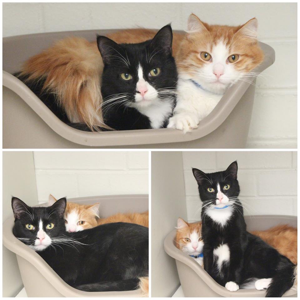Memphis (black and white) and Orlando came to our facility separately. They spent some time in foster care together and we keep catching them having sleepovers in the same bed.