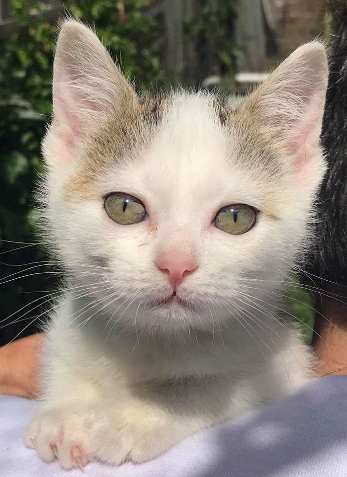 Gerti is a sweet and gentle little girl, who loves to roll over for belly rubs and will purr very loudly. Some new noises and smells still give her a fright, as she explores the big new world she has found herself in. She will give off a little adorable soft hiss, but as soon as she knows she's safe in your arms she will purr non stop and rub her little face all over your hands.