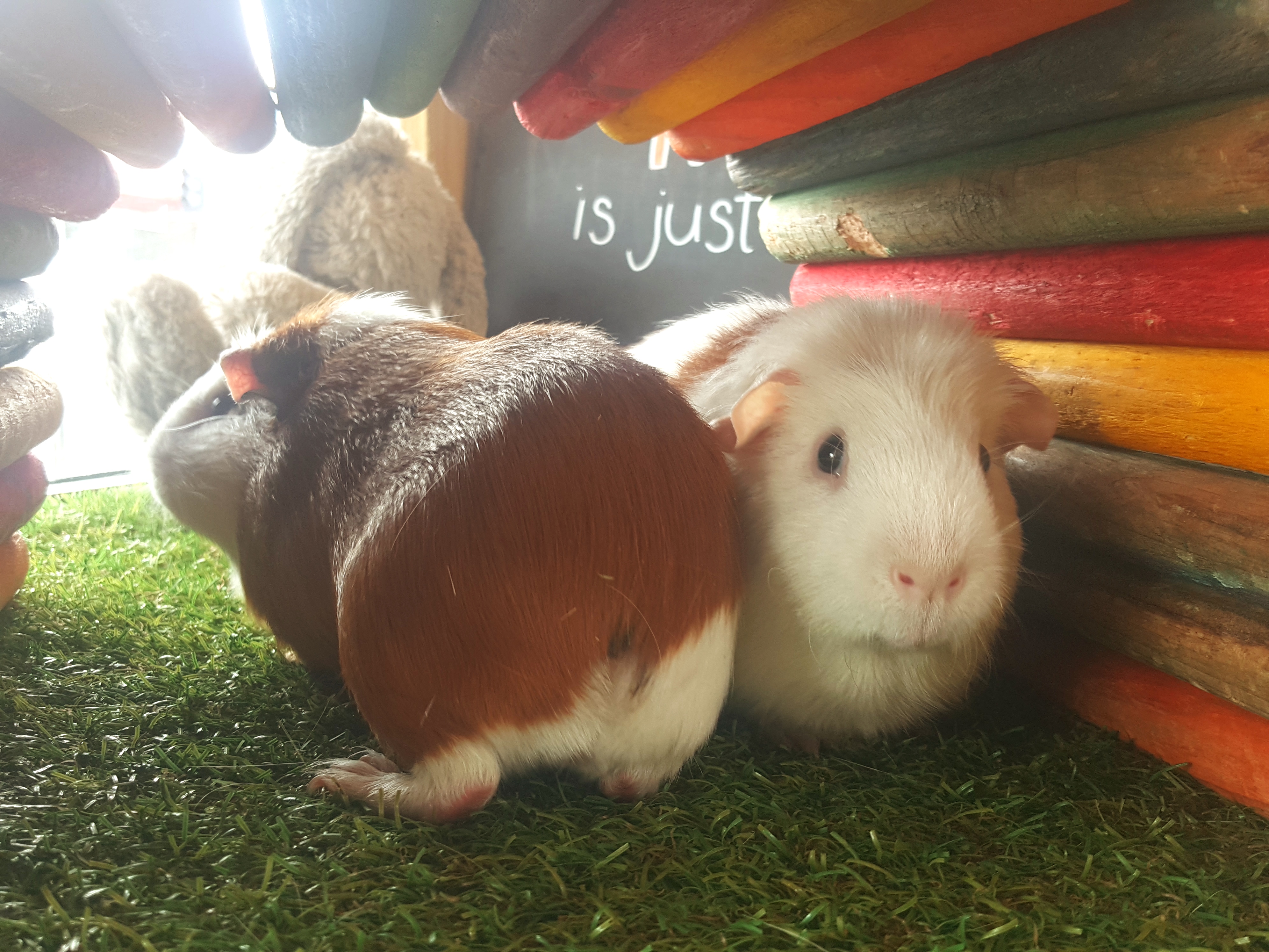 These two are very friendly and love a good head scratch. They are males and get a tad grumpy if cooped up in a small cage for too long.