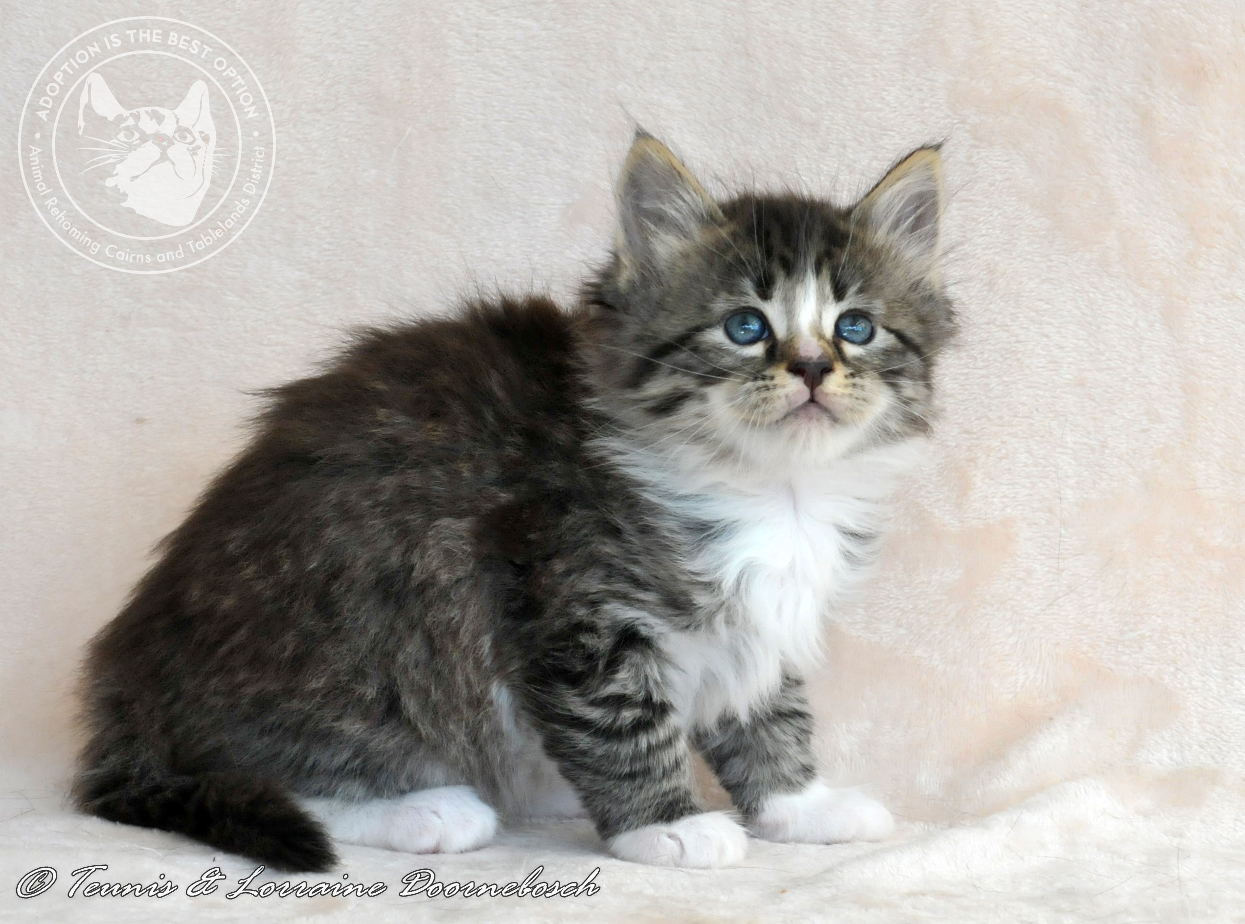 Zane was born 17.07.18. Along with his mum Matilda and four siblings, he was found dumped in a box. A good samaritan rescued the family and they came to us. Zane is a bit camera shy, but that's just that "big eye" staring at him. Put the camera away and he is just the sweetest little boy. He has beautiful markings and again, that lovely soft and silky coat. All the bubs have been raised by their loving mum and are very friendly towards people and reasonably used to seeing dogs around. Because their mum is so friendly and forgiving, they've never been taught to be fearful of humans. They have been desexed, microchipped and vaccinated as well as being flea and worm treated regularly. In foster care in Millaa Millaa.