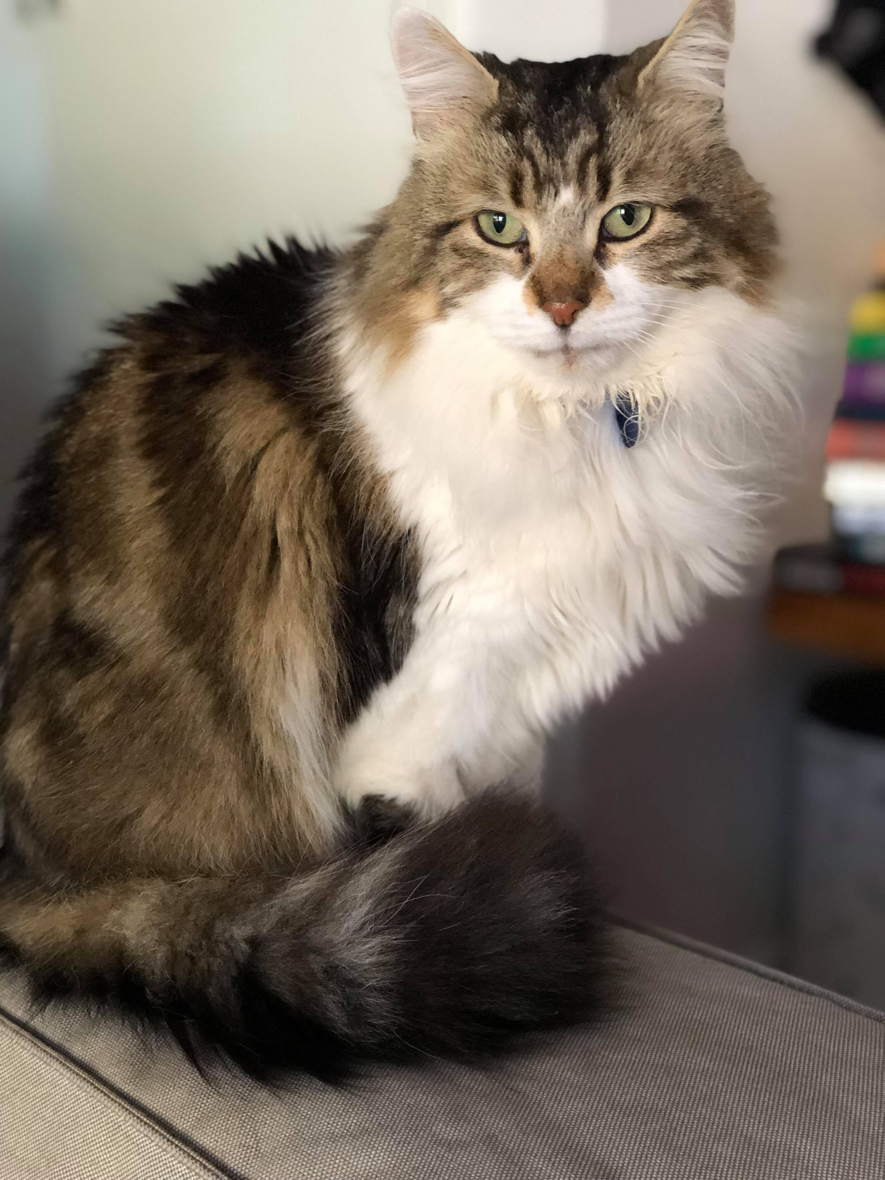 I am the ultimate companion cat. I will sit with you, next to you or on you and purr all day.