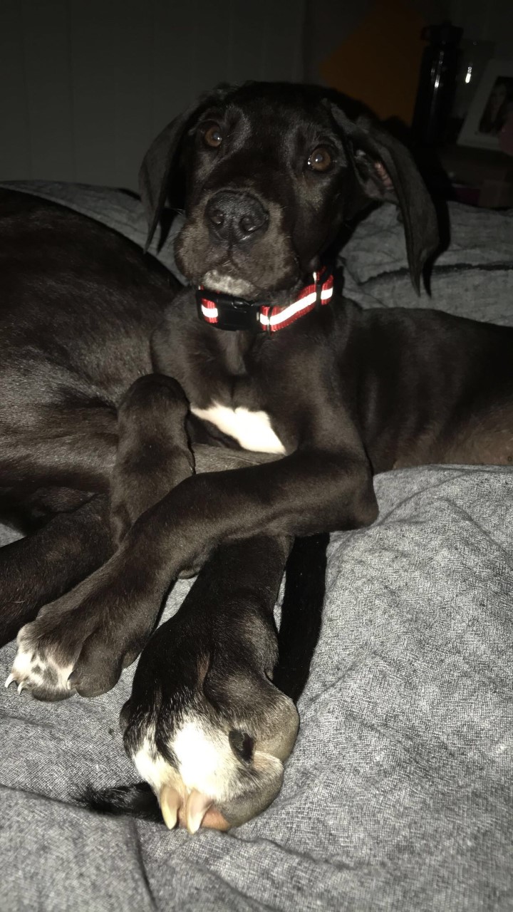 I am a sweet young man who is very polite when meeting new people, due to lack of early socialisation, I am quite standoffish when I meet new dogs. I have completed puppy classes with my foster parents, and the first week I was very reserved and shy but slowly came out of my shell. I have 7 month old Great Dane foster sister and I love her dearly, I instantly bonded with her and I hope to have a big sister or brother in my new home.