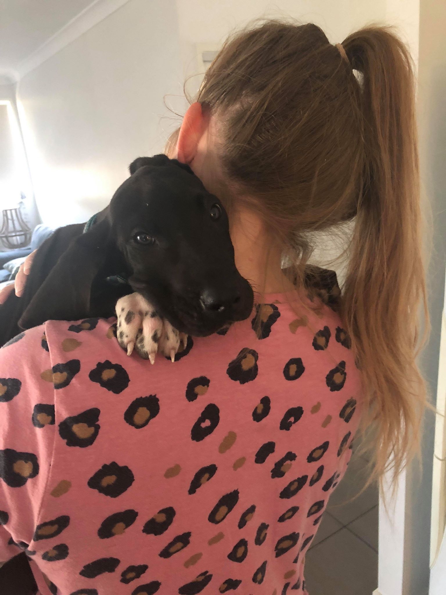 This pet has been adopted and found love with its new family.