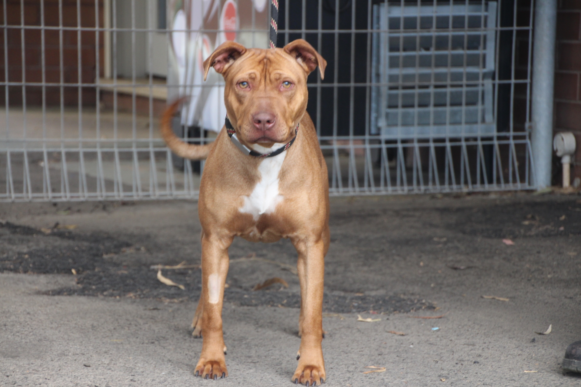 This gorgeous 18 month old am-staff x would love to be adopted to her forever home.