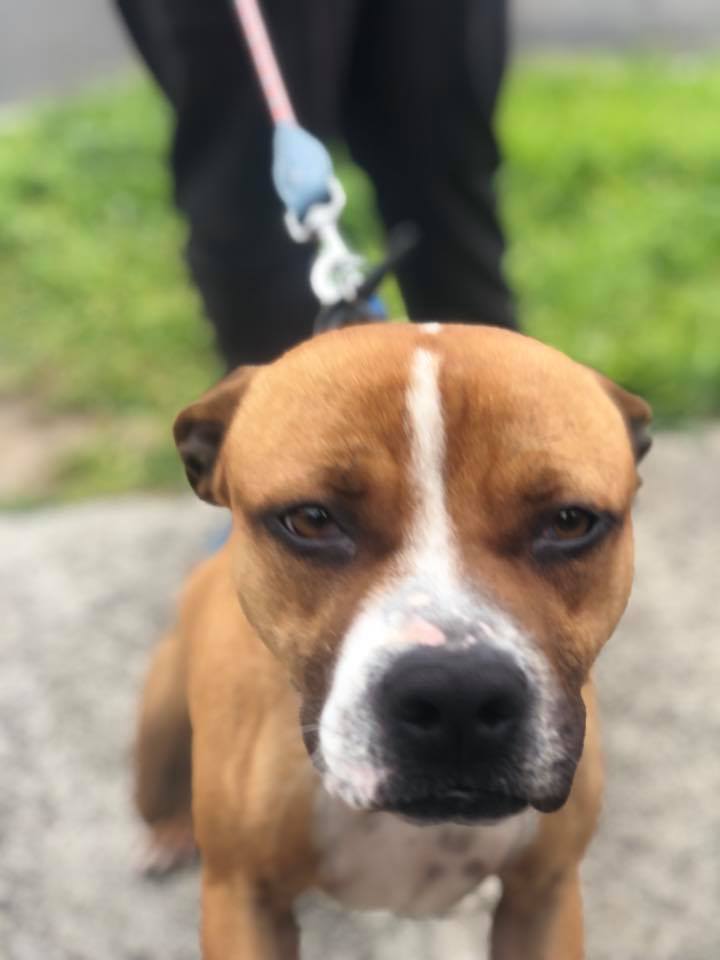 bullet is a great little dog loving life, he knows basic commands he can be dog selective he walks good on the lead, bit larger than an English staffy but not much he would make some one a very good best friend or family member he could use some training no cats or small children, he can get excited and bounce around a bit