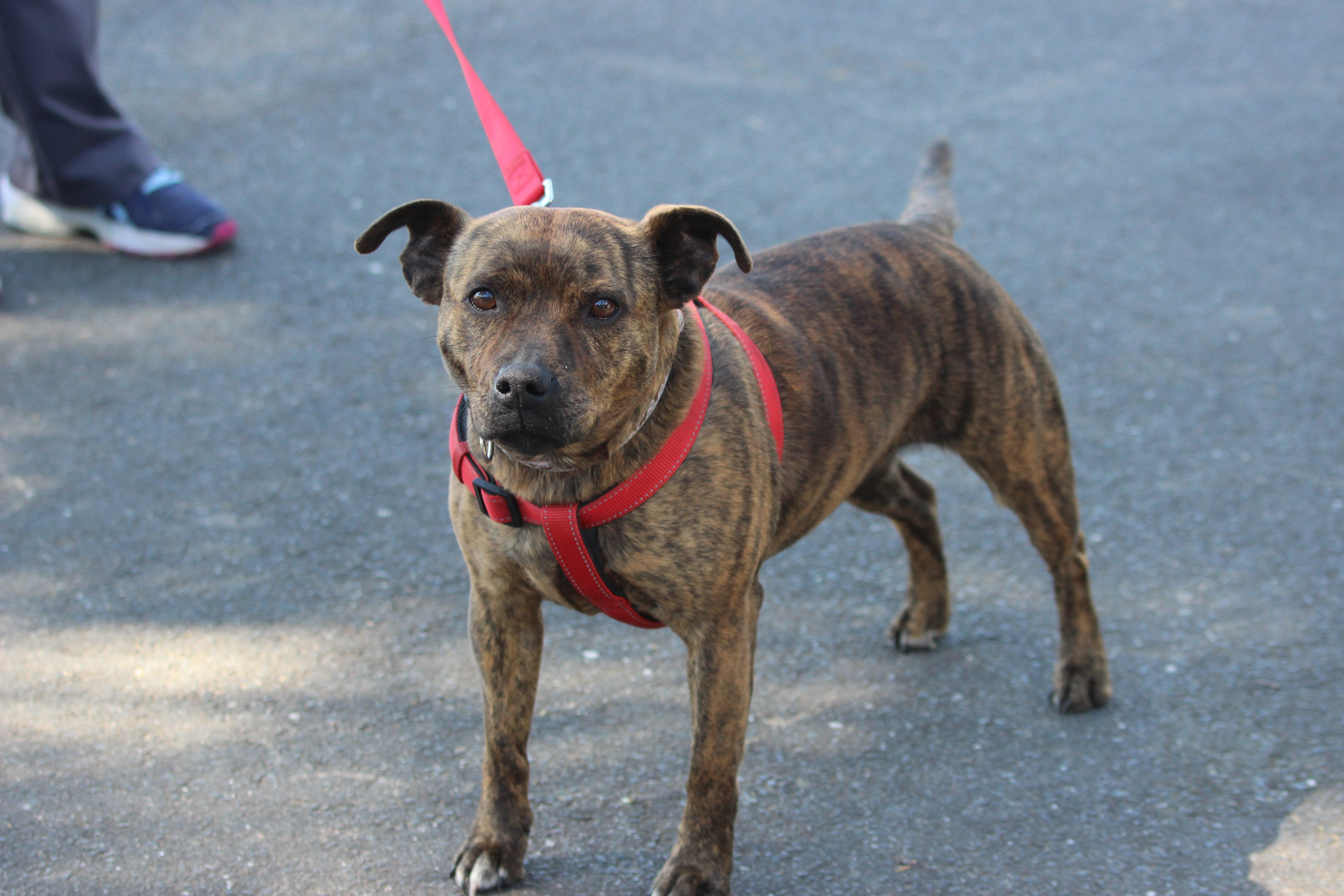 Bella came to us originally through the pound a few years ago and we rehomed to a lovely family that at the time lived in town and the mother was home full time with young children.. since then the family moved onto property and the lady of the household went back to full time work.. Poor Bella hasn't coped very well being a staffy.