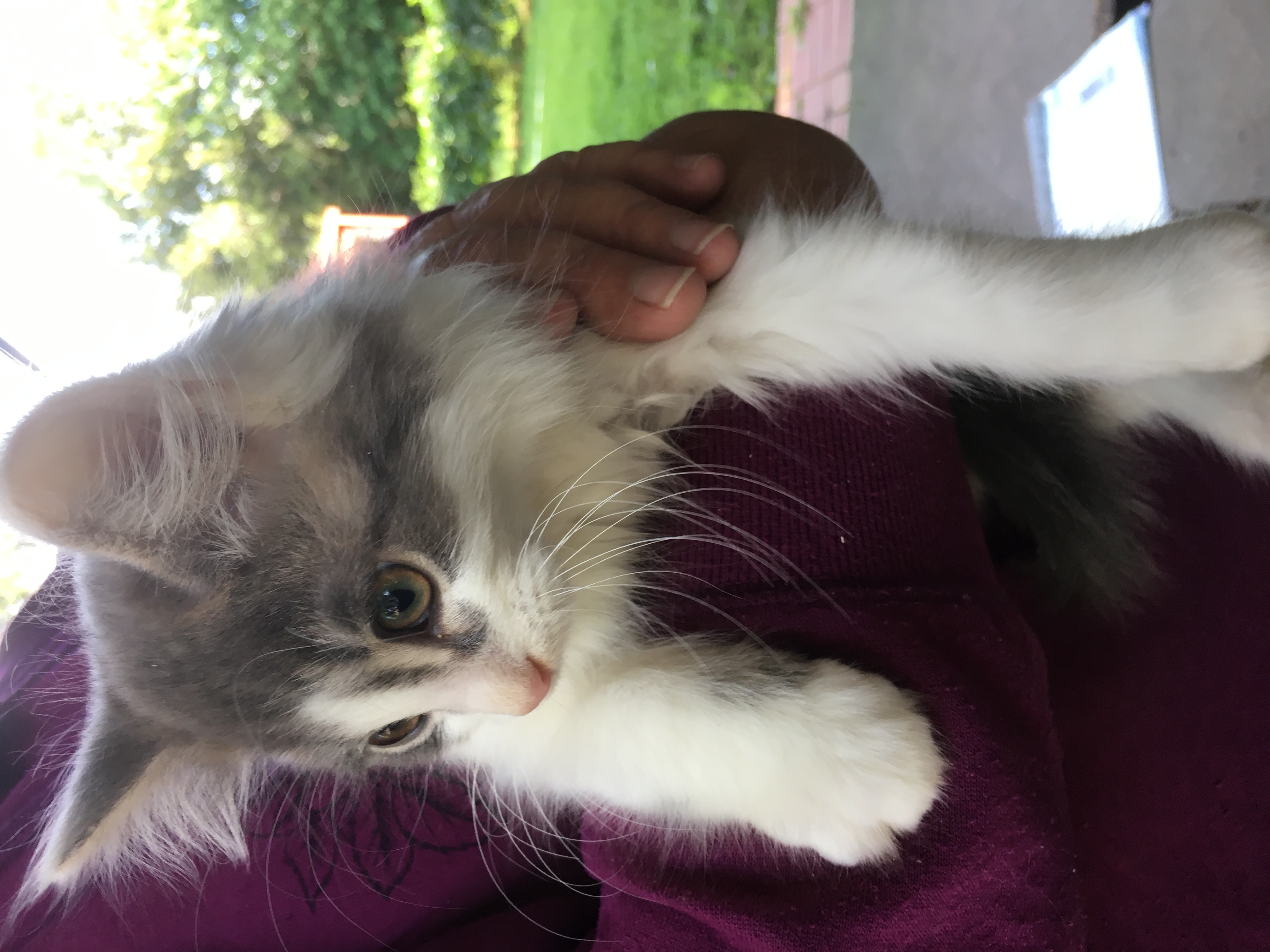 Meows is a friendly little kitten, enjoys human company and cuddle time. A fluffy fellow with pretty colourings.