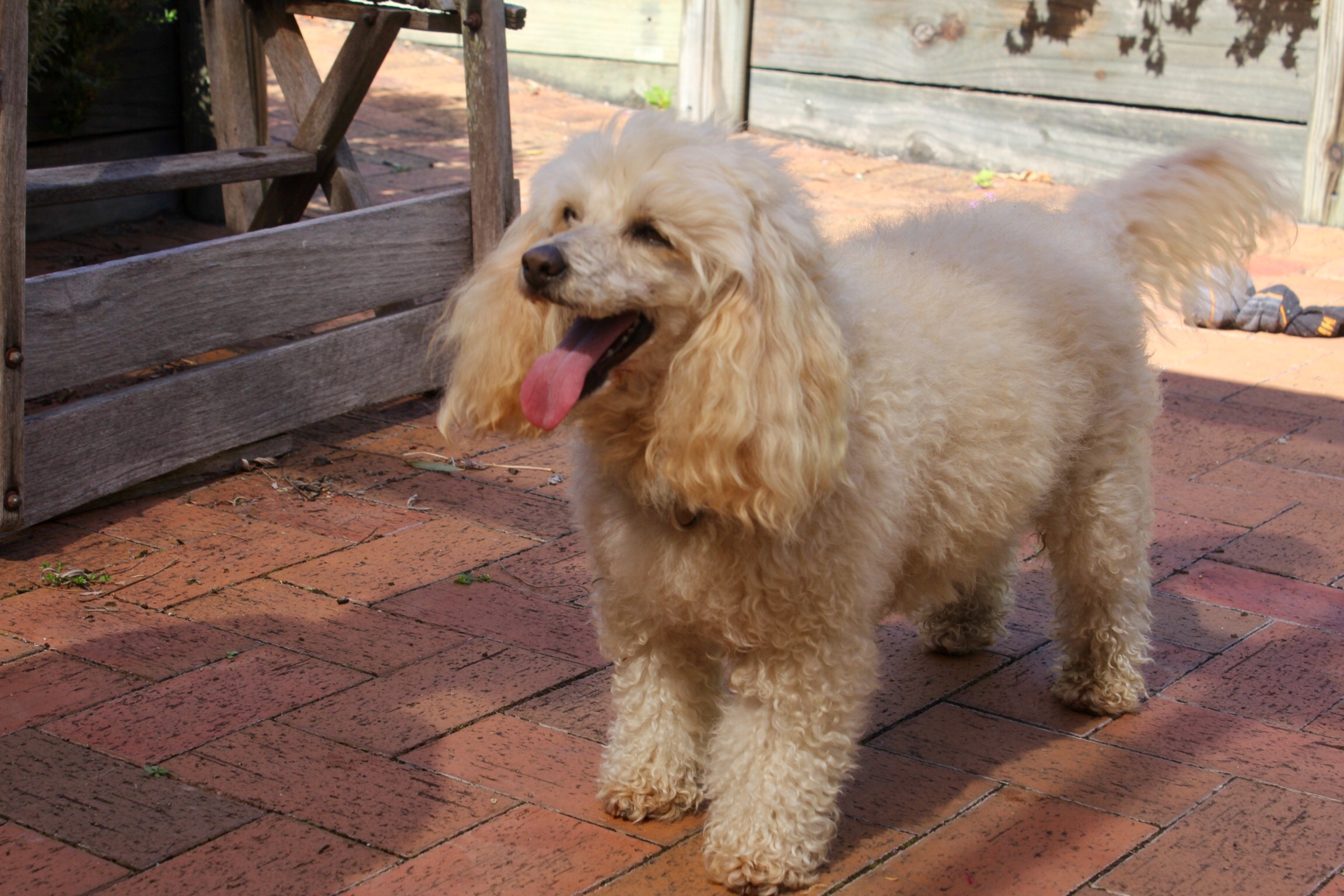 Bailey is 9 years old and is a cream/apricot poodle đ©