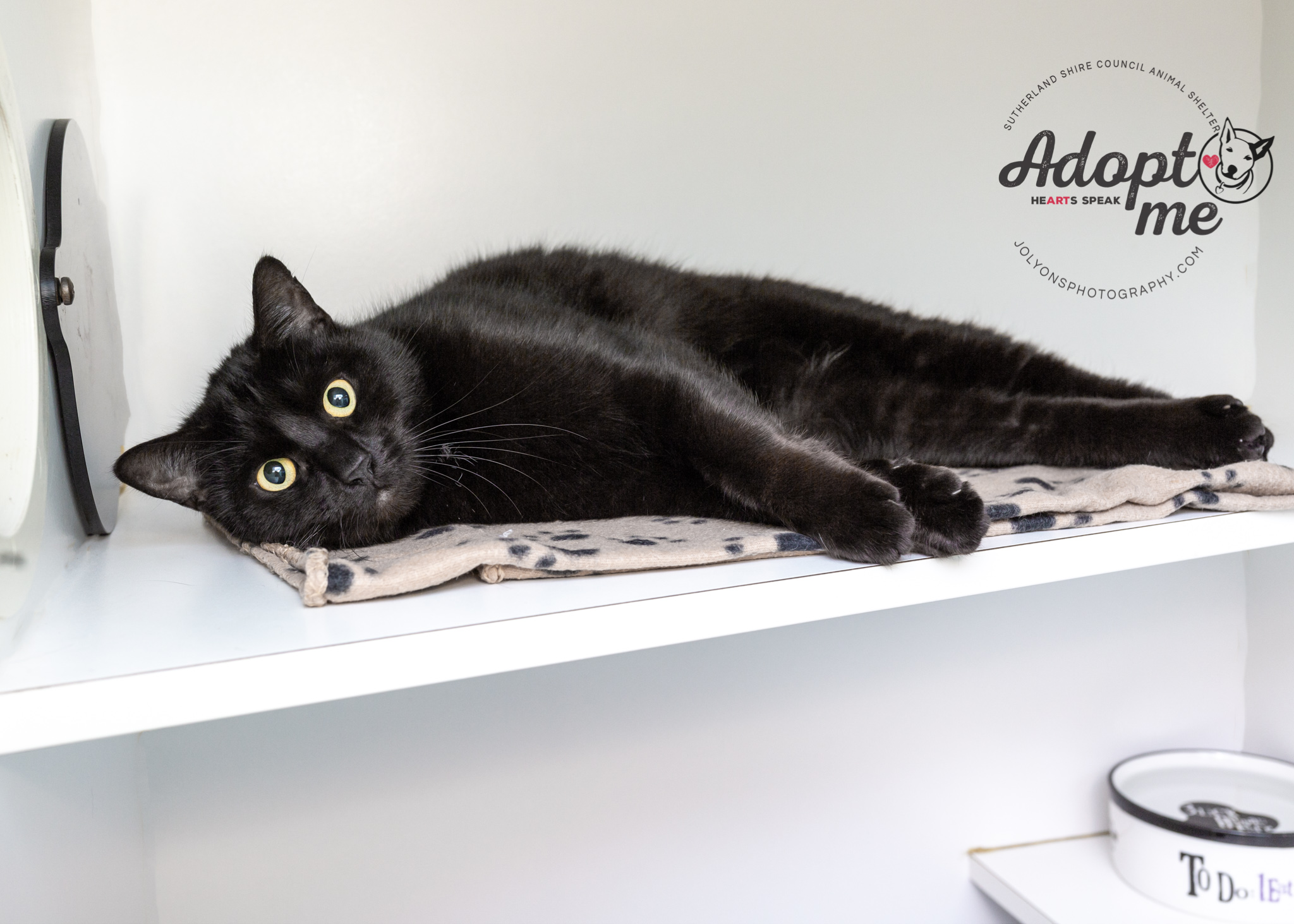 Pendulum is positively purrrfect in every way possible. This glossy, shimmering black cat has a truly lovely soul and radiates positive energy. Pendulum was found as a stray and brought into us where she has finally come up for adoption after awaiting her impounding period. Pendulum is affectionate, friendly and inquisitive and wants to interact with the other cats when they come out in the cattery, she is happy to be touched all over and is just a calm and sweet girl. This stunning Pendulum has predicted an amazing future for herself, and she wants you to be in it. If you think this black beauty calls to you, come down to meet her today, we’re sure you will be caught up in her magic.