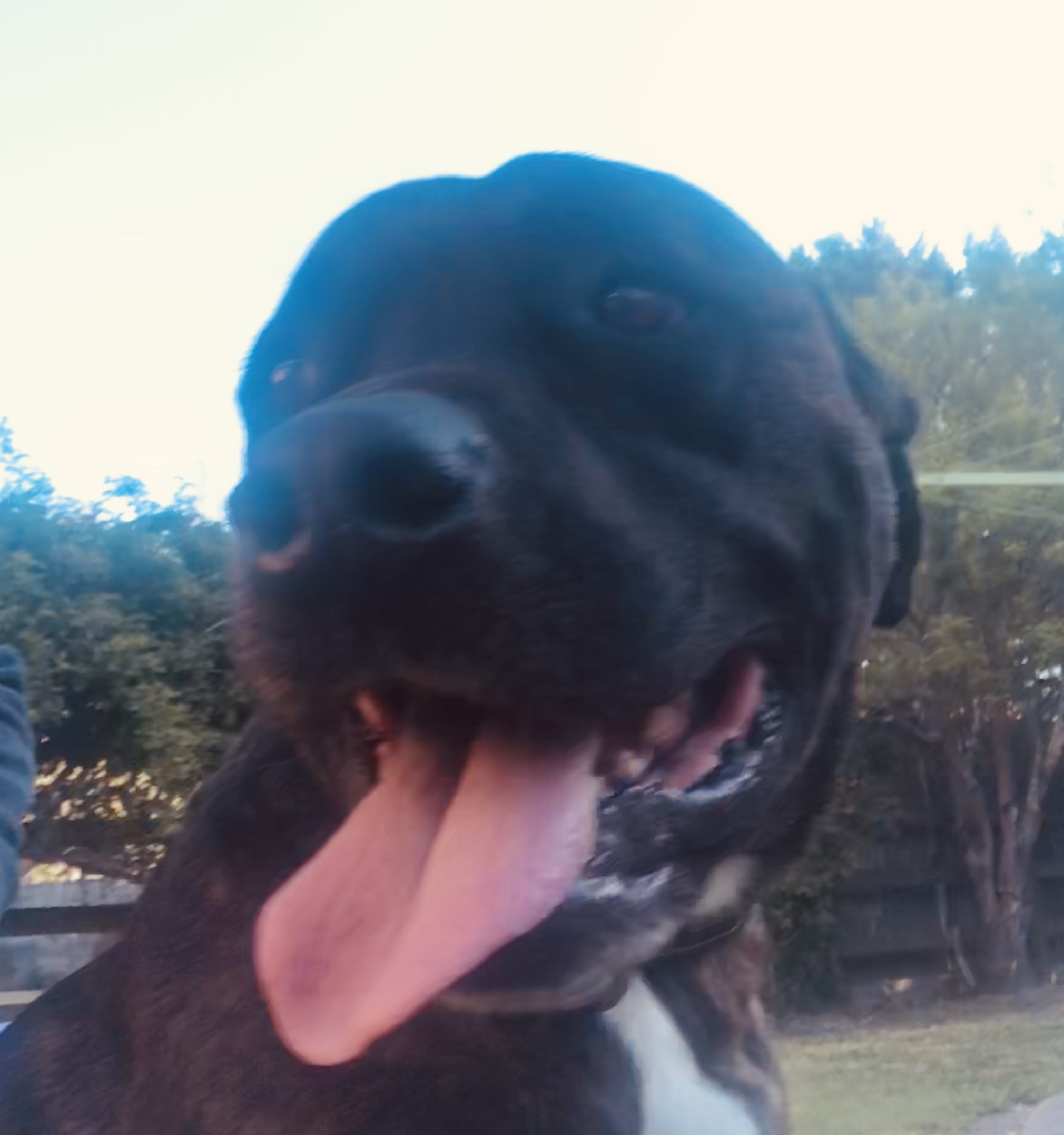 Riley acts like a 3 year old. He is super excited just to be with you. knows his commands. He does however need an experienced handler. He is dog selective. Friends with most, but some not. We believe he is Staffy cross Bullmastiff.