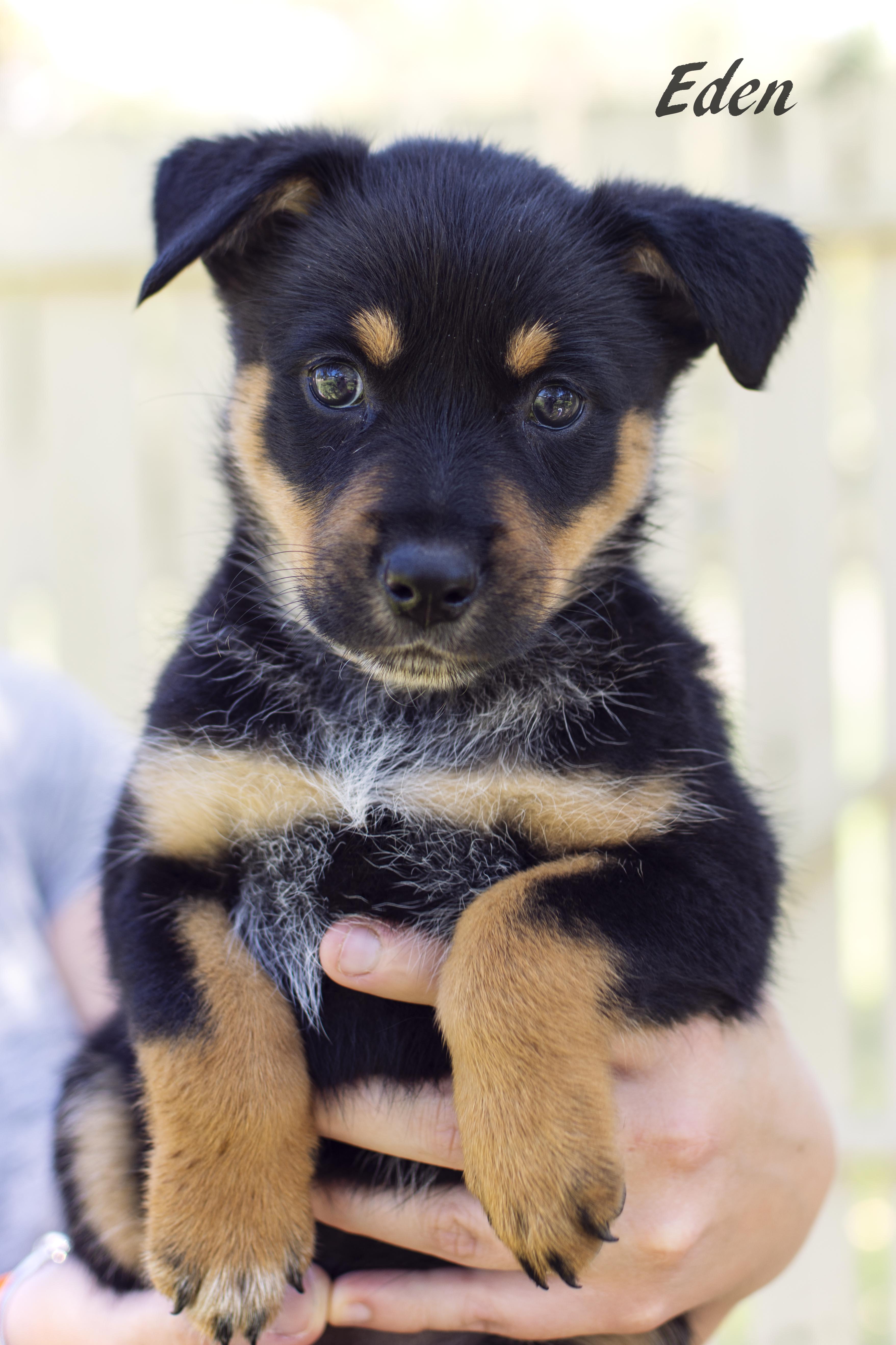 Eden is also affectionately known as FluffButt, she is a 7 week old Kelpie X. And she is the super fluffy one out of the litter with a little curl in her tail.