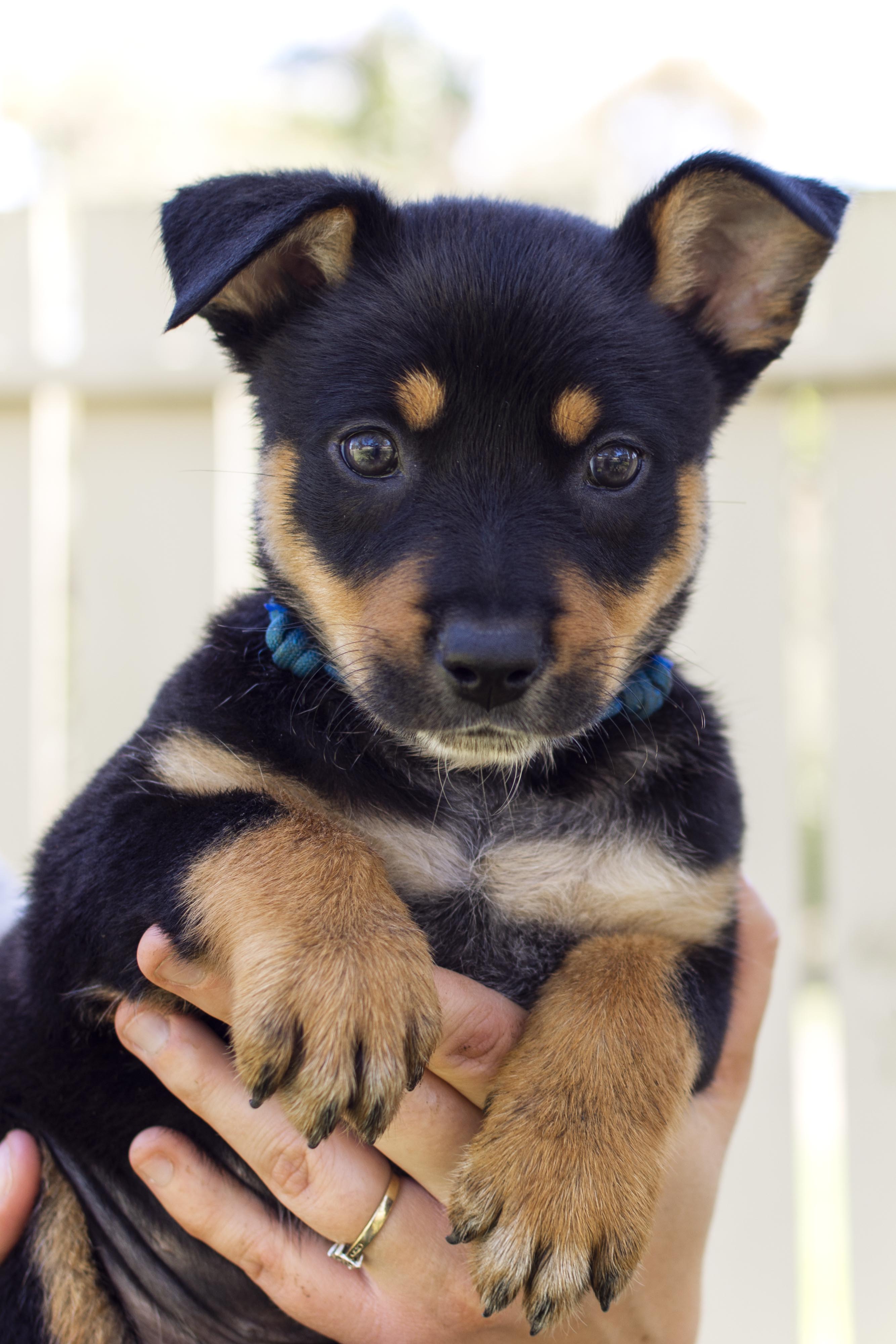 Fraser is the one who cant decide whether he wants a cuddle and pat or whether to go and play. He is a 7 week old Kelpie X.