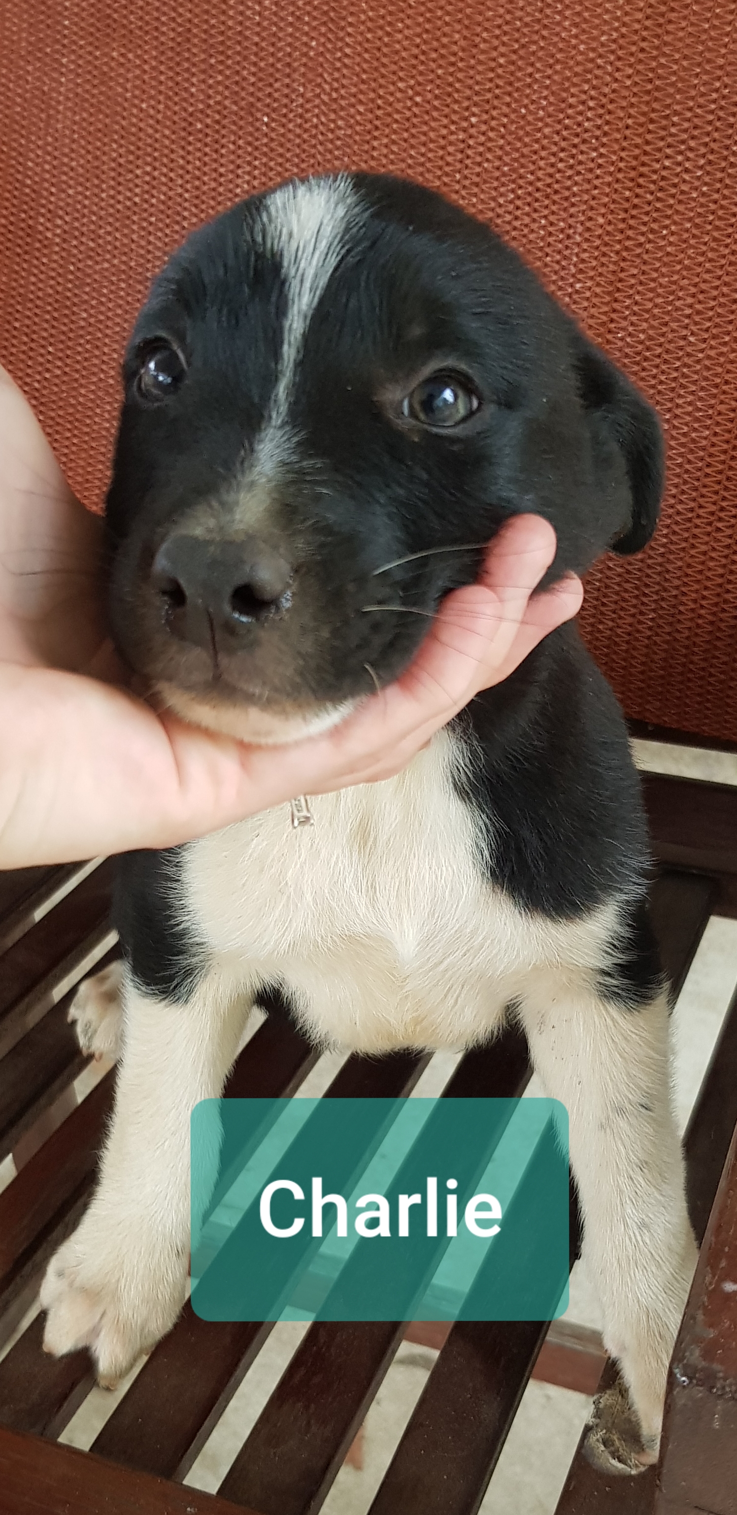 Charlie was the smallest of his litter out on the farm. He is a cattle dog x border collie, short coat. He will be a medium sized dog once fully grown.