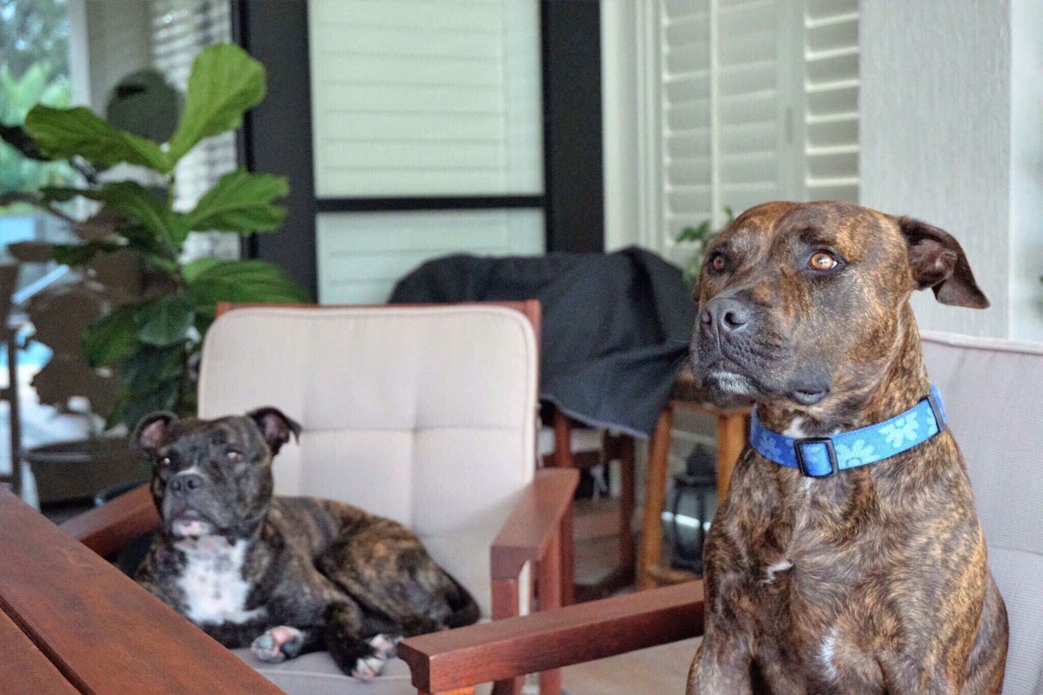 "They play well together and are extremely well mannered. There has been no digging, chewing or barking. Both are good with basic commands and eager to please especially on their walks. They are happy to spend time outside on their beds (or a vacant chair!) or sunbaking. But oh how they love a cuddle â a spare lap to snuggle in and provide endless love and kisses.