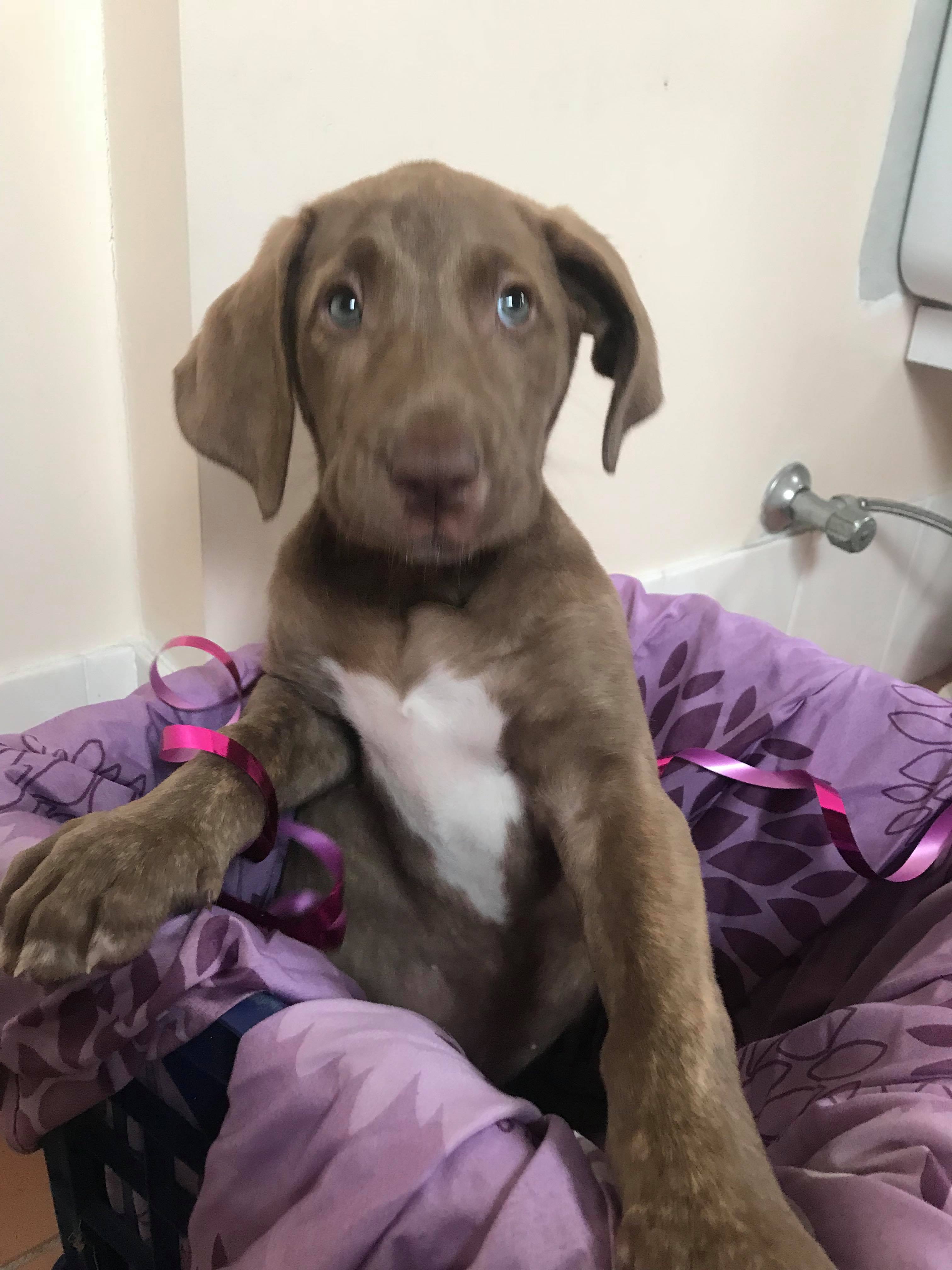 Honey is a 9 week old, female, Labrador x Bull Arab x puppy. This inquisitive pup has the most beautiful green eyes and loves everyone - dogs, cats, people