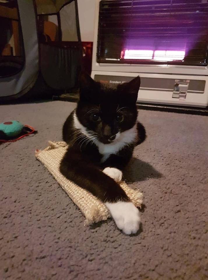 Mischief had a very rough start to life born on the streets and rescued with a Huge open gash! He is all healed and ready for his perfect forever home This sweet little man will make the perfect kitty for the right home. He is a quiet cuddly little man that purrs loudly and loves his foster kitten brothers. He would do well in a quiet home with someone that has patience..your patience will be rewarded with plenty of love from this gorgeous boy. He loves to run and play. This sweet natured boy would make a beautiful addition to some very lucky family
