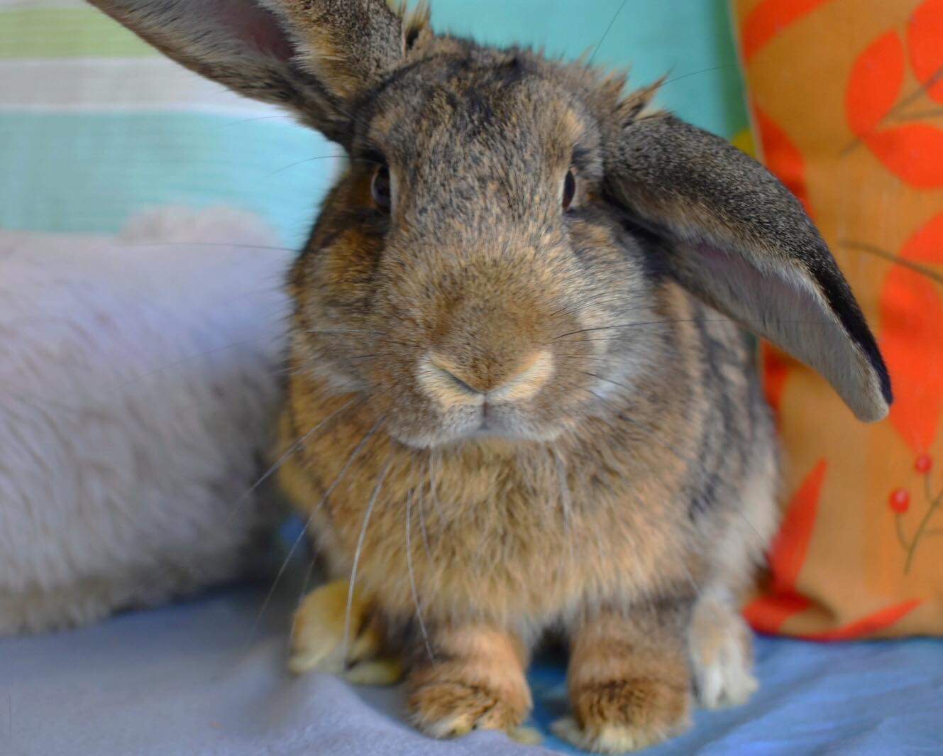 Meet the next love of your life: Dwayne the rock Johnston. He is a big, goofy agouti boy looking for his forever home. Like most rescues he is a little timid at first, but you can win him over pretty easily because he’s a sucker for head pats and a good scratch on the bottom! He’s an inquisitive bun who likes keeping busy playing with toys, or having a good run and binkying around his enclosure. Like everybun, when he’s tired you can find him stretched out having a snooze.