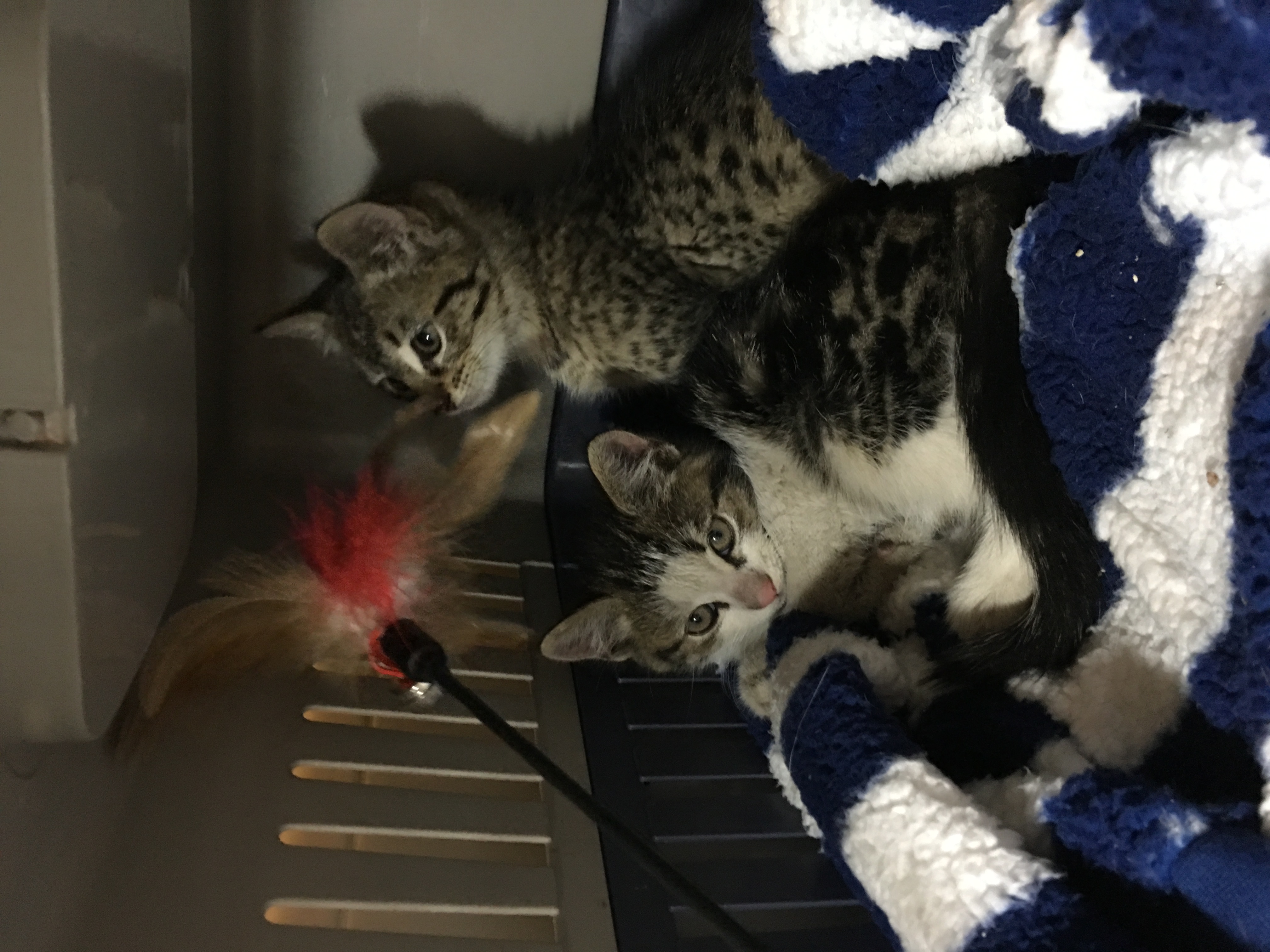 Both kittens are boys and they are approximately 9 weeks old. Except for a belly full of worms, they have been given a clean bill of health by our lovely vet.