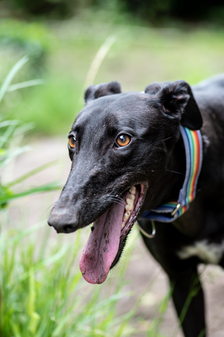 Maggie loves to be in the midst of the action and is the best social butterfly you will meet! But she loves lazing around with her loved ones too. She is super affectionate and playful, and is happy to potter along a walk or do a zoomie with her pals at the park. Maggie’s currently in foster care with her grey-sisters Mia and Matilda. She would suit an active family home or just to be a fun and friendly companion dog for cafés and puppy-lattes! She doesn’t like to be left alone much, so she would suit a home where she’ll often have company. Maggie is a great listener and loves her food, so she is very easy to train with treats.