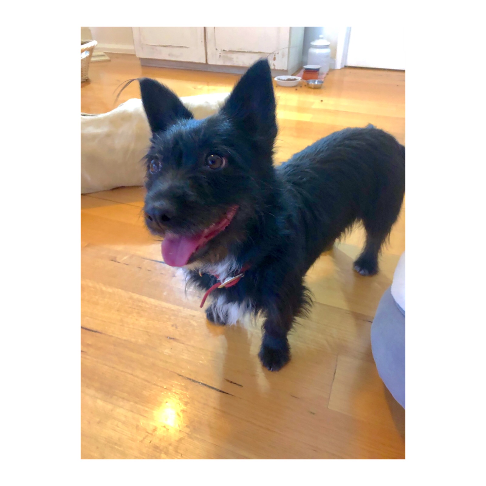 This little Lady is an inside dog, no nights in a kennel outside for her please! She has a soft shaggy coat and has recently been to the groomer which she thoroughly enjoyed! She would prefer to be the only girl in the house and have her families attention all to herself. While she has been known to get a little jealous of her humans sharing their affection with other dogs in the home, we have seen none of this whilst in care. Lady knows how to use a doggy door, and while her toileting habits have been very good she is offered regular outside toileting breaks often when inside because as good dog owners know, accidents do happen. Lady is cat friendly, however does get just a little cheeky with the less confident ones!