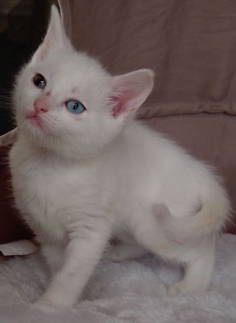 Hi I'm Blossom. I am the absolute smoochiest and sweetest little girl you could ever meet, who is always waiting to run and play or have snuggles and kisses with you. My siblings, Jack Frost, Oak and I were born in foster care. Our Mumma August was a stray cat who was brought into care heavily pregnant with 3 babies and apparently we were not her first litter. I happily live in foster care with other cats/kittens, dogs and my big and little foster carers. I'm an affectionate, super playful and cuddly kitten, who will make you smile non stop. I love watching all the goings on in my busy foster home and like to help you whenever I can. I love to climb too. I love to lay on your lap and have ear, chin and belly rubs. I am an INDOORS ONLY kitten (and being all white I will need to be careful laying in the sun in windows and outdoor enclosures), but I love it best there because I feel safe and love being near my family. I will need a special home with someone who can give me lots of love, understanding, time and patience to adjust to a new environment and when settled I will give lots of love and kitty cuddles.