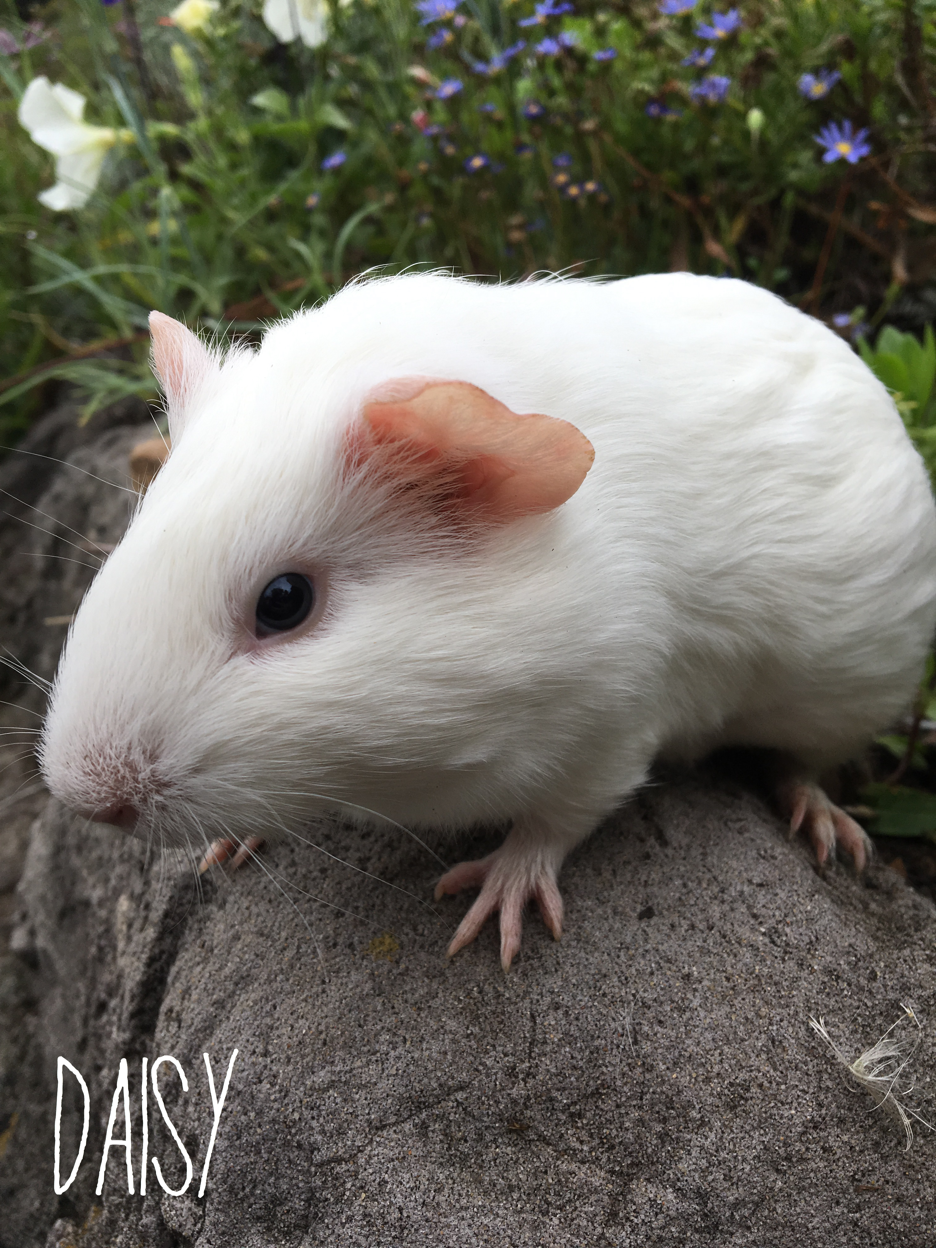 Guinea Pigs are herd animals and must live with their companions of their own kind - they cannot live with rabbits. They must be adopted in pairs (or trios) or can be adopted singularly to a home that already has a female guinea pig or desexed male.