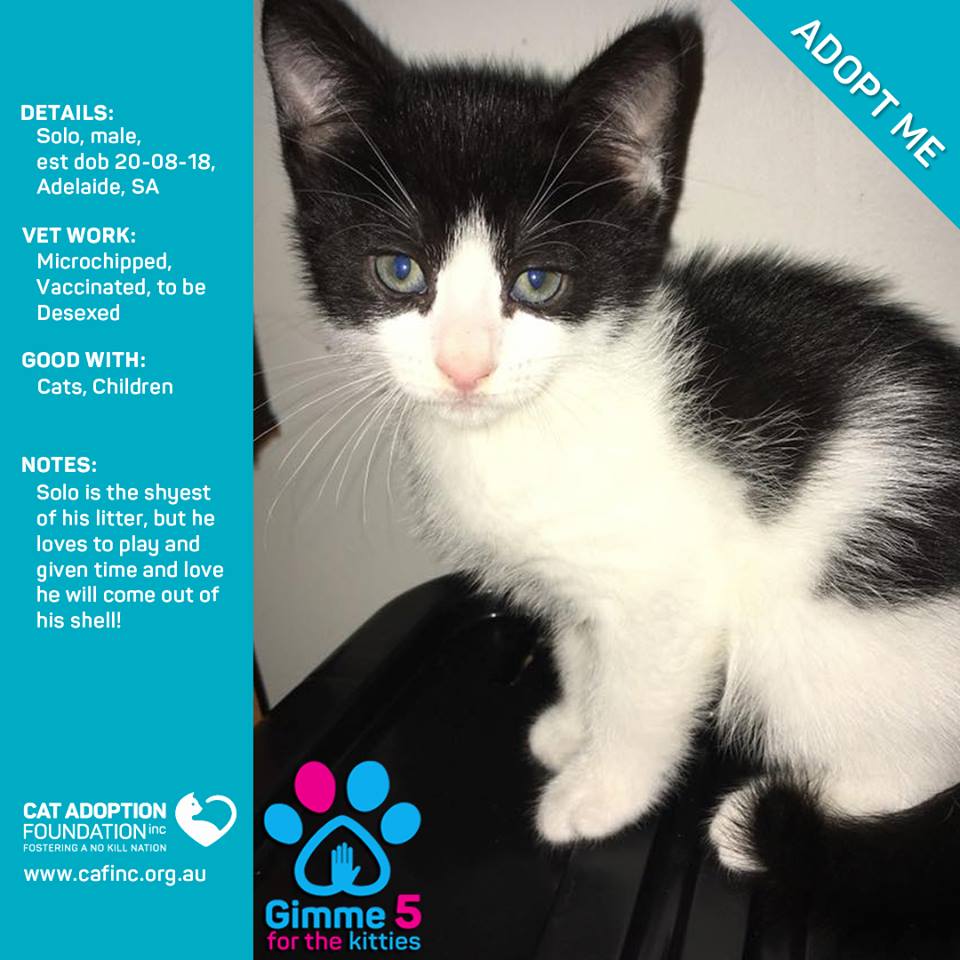 Donate to Solo at Cat Adoption Foundation Incorporated via Shout