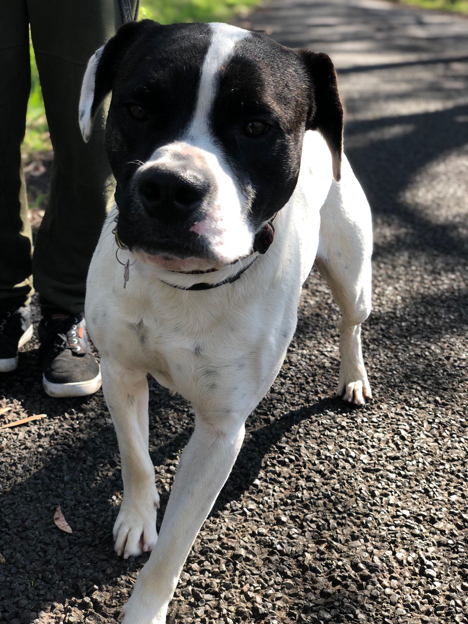 Arnie has an amazing personality and is friendly with other dogs... He is very muscular looking hence the Name Arnie lol . He has the lean body of the boxer and muscular head of a mastiff... He has a very sweet disposition and he doesn't jump up.. He waits patiently for his food and is pretty good walking on a leash .. Arnie's adoption fee is $350 and vet work done by rescue He is microchipped , vaccinated worm, flea/tick treated and being desexed tomorrow desexed. If you think this adorable le boy would fit your family please complete the application below