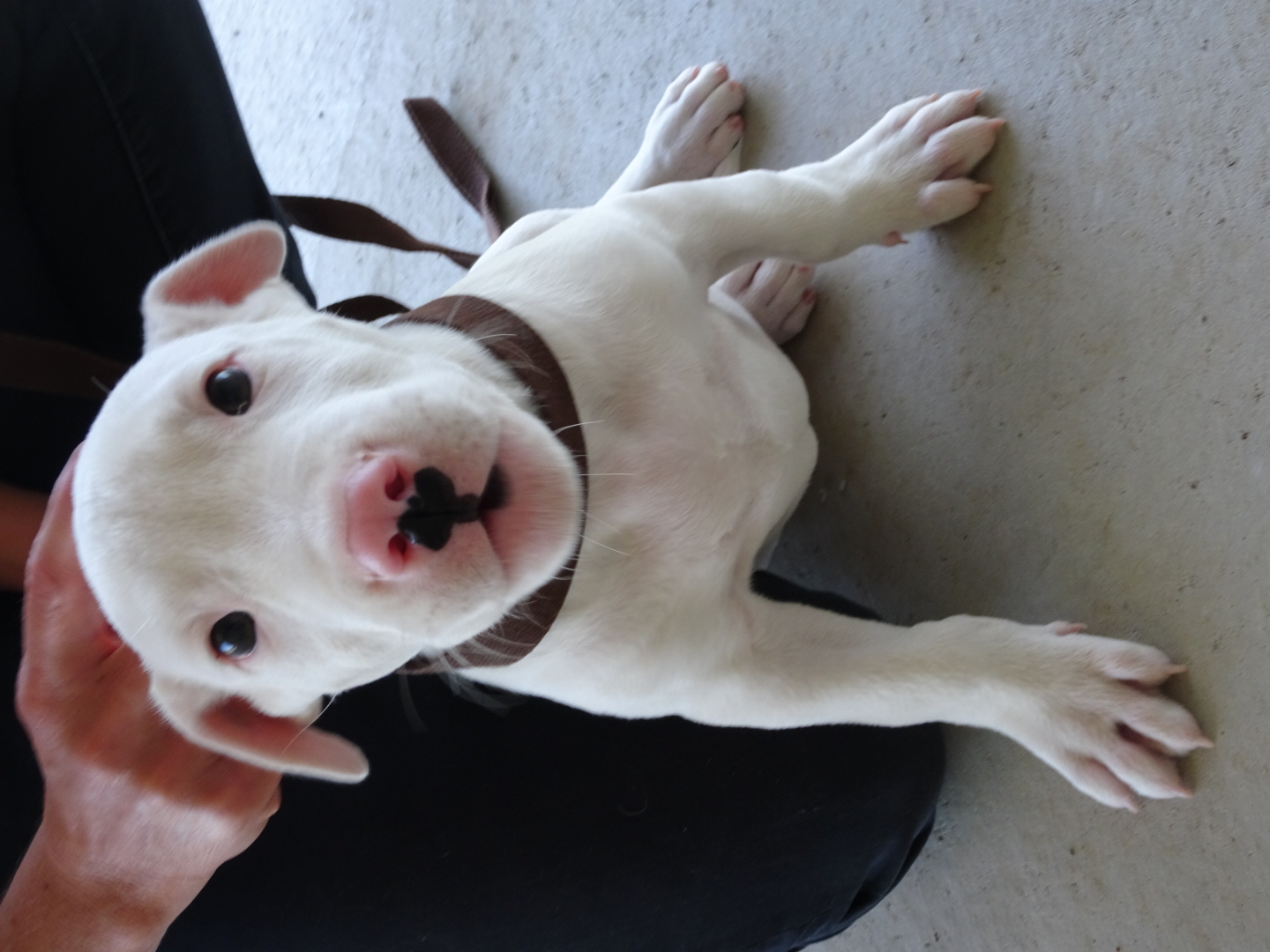 Hi, I have been named Ghost, I guess because I am pure white. I was found by the police on the street when I was 4 weeks old. I was cold, skinny, covered in fleas and full of worms. My carers at the pound made sure that I was looked after and gosh I'm glad they have. I have made heaps of friends (both human and doggie) and now that I am 8 weeks old, I am ready for my next adventure. My carers say that I have grown alot and I now have lots of energy for play time.
