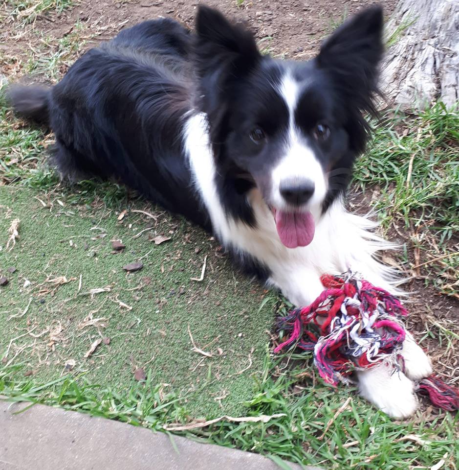 My favourite past-times are going for walks, meeting new people who I can charm with all my border collie cuteness, sleeping on your lounge (or if I have to on the floor or in a crate), playing tug-of-war with my rope toy and I love chasing and chewing frisbees.