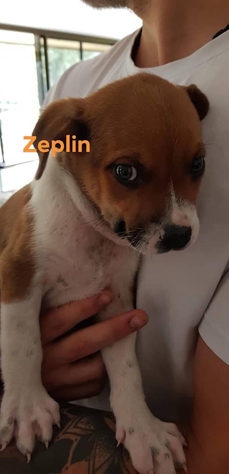 Zeplin is a beautiful quiet fellow with a lovable personality. When picked up he dissolves into your arms and is the biggest smooch. His BIG goldy green eyes paired with his tan, white and black coat make him a very handsome pup.