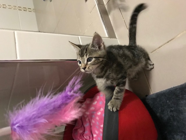 Alfie is a gorgeous, spirited little tabby full of confidence and energy.