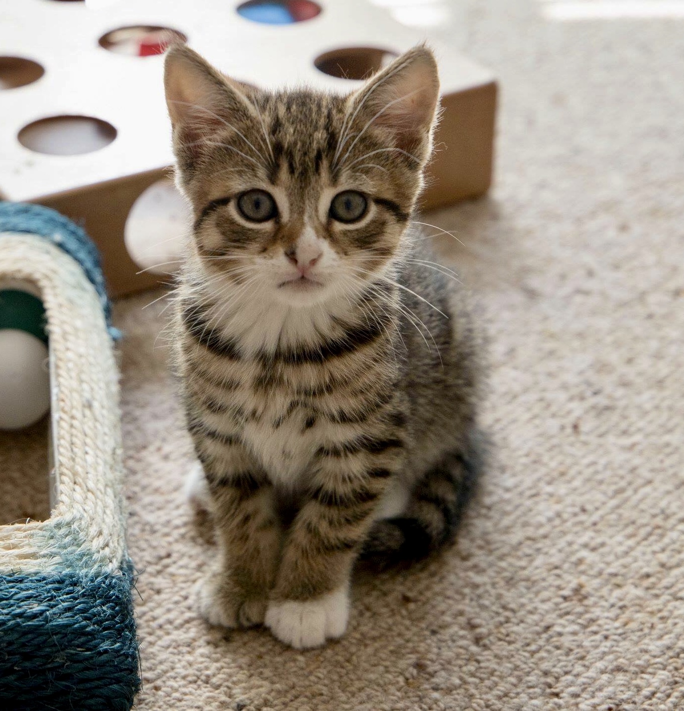 He loves to play with his siblings, especially chasing balls around the floor, and has mastered the litter tray.
