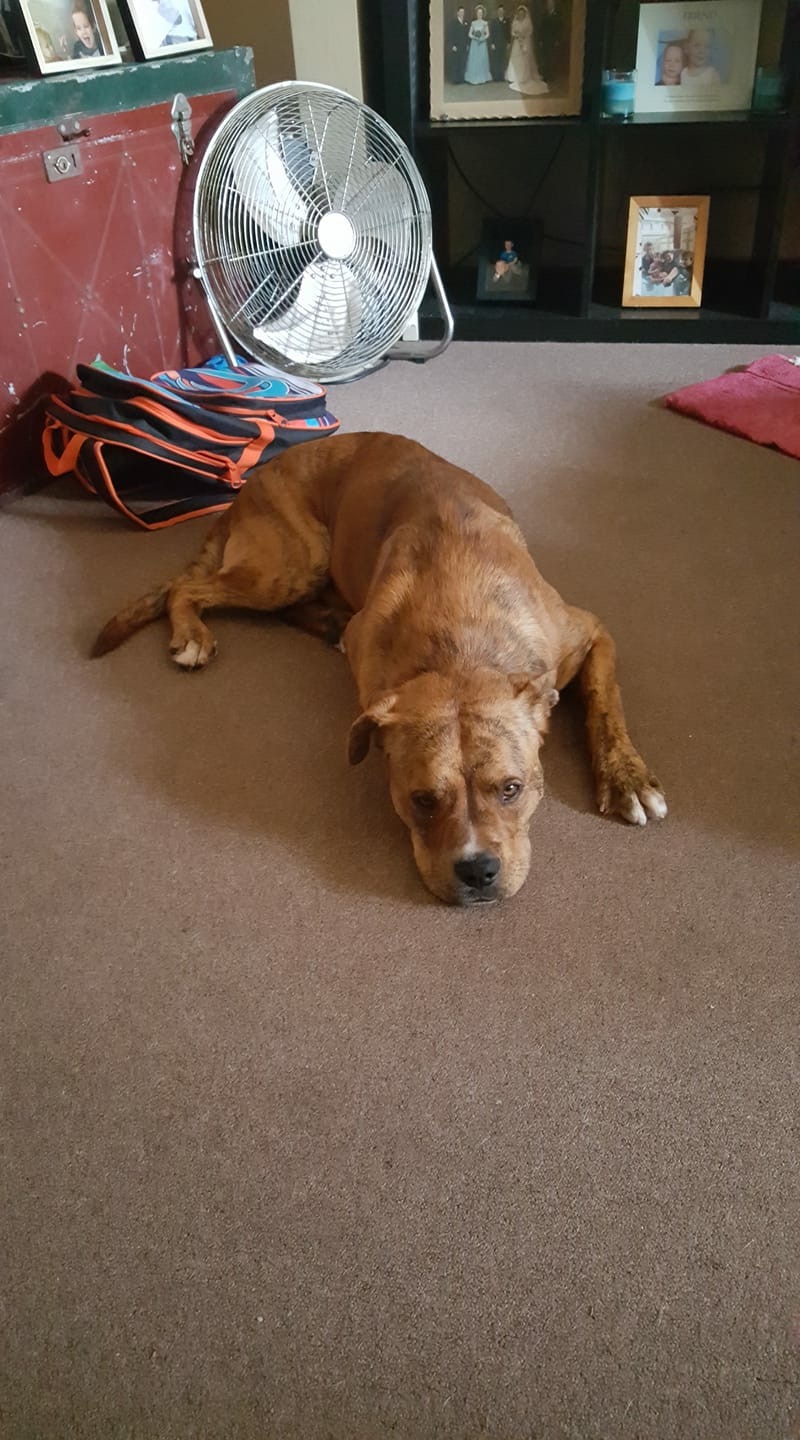 Zeus is a very laid back brindle beauty who loves to play with other dogs. Zeus adores kids and is very gentle. Zeus is very happy to sleep in his own bed (inside next to you of a night time of course).