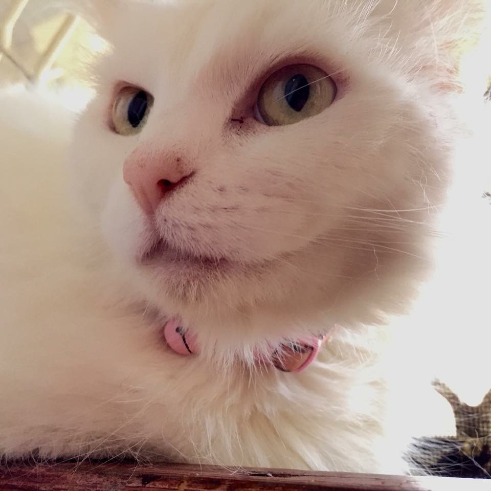 2- she has white fur and light pigmented skin which is more prone to skin cancer