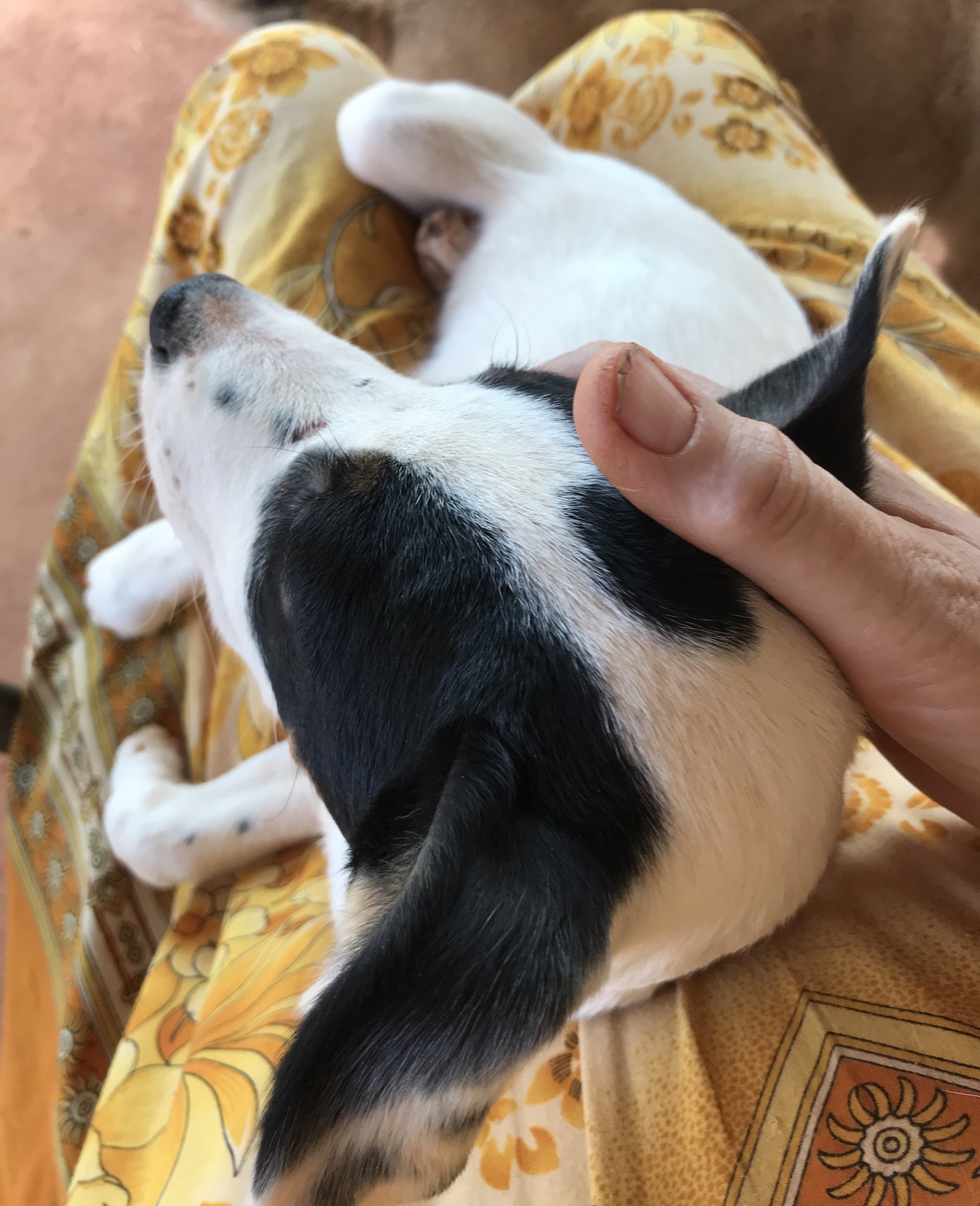 Spot is a great little guy and really intelligent too. He is a really cooperative little boy and just so easy to care for. He loves to get outside with the other dogs and run around and play wrestling games. On his off lead bush walks he loves to explore but rarely wanders out of sight. If he does he has great recall to his name or a whistle. Spot is very sociable with the other dogs in the crew and savvy enough to know which are up for a game and which to steer clear of. Even if one of the grumpy old guys tells him off he just takes it on the chin and gets on with it though. Like his brother Pretty Boy he loves a lap cuddles and is really soft and snuggly. Spot is a sensible little boy and will find a nice safe place to have a nap if he is tired, or curl up on a dog bed in the evening with his brother on one of his good mates.