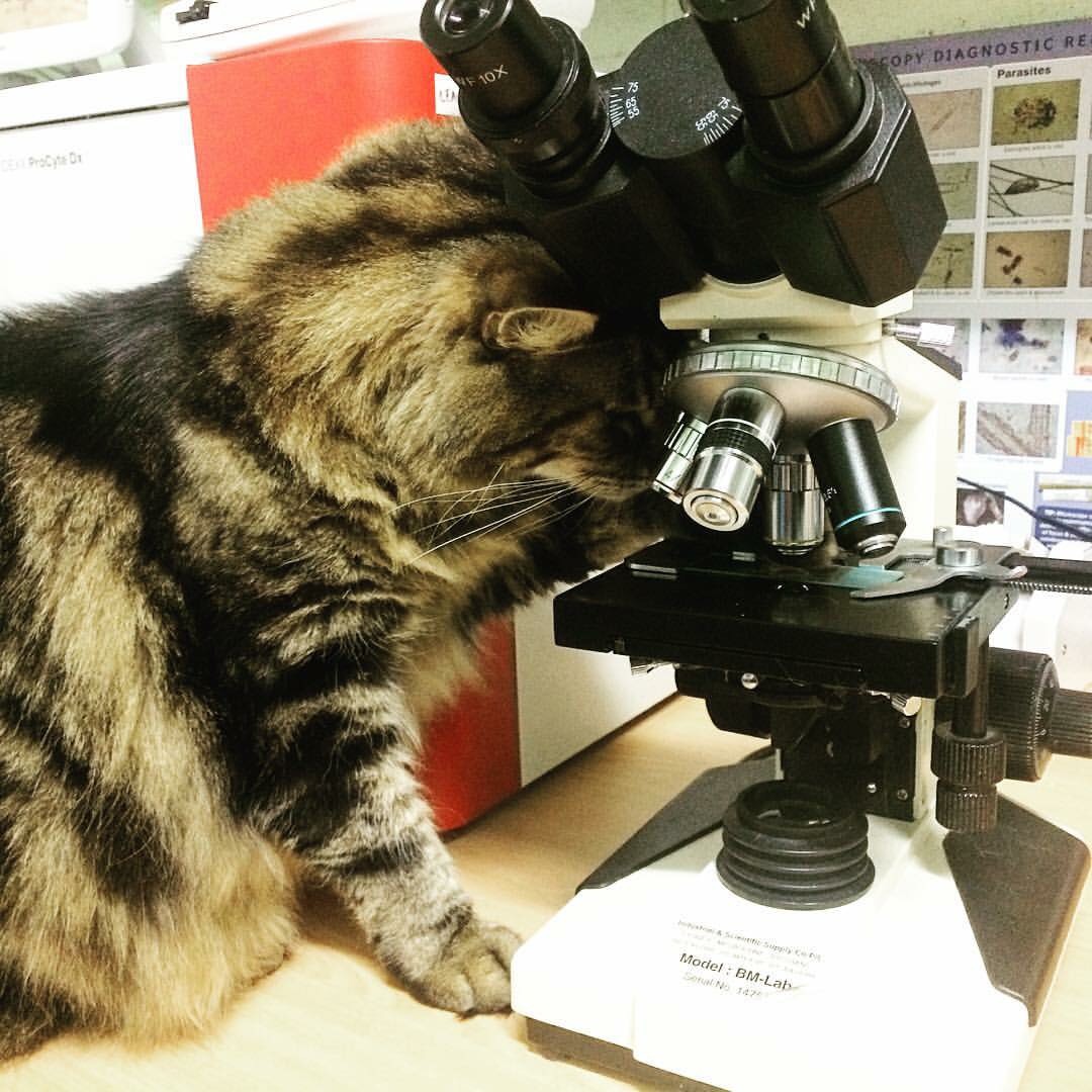 He enjoys being Mr Independent but will nudge you when he wants attention (of course in his time when it's all about him) and enjoys to nap in the sun next to the window. He is cracker on the microscope too!